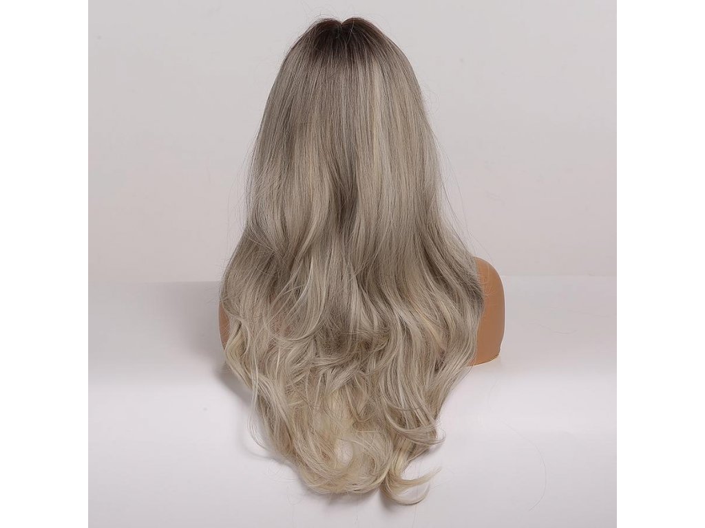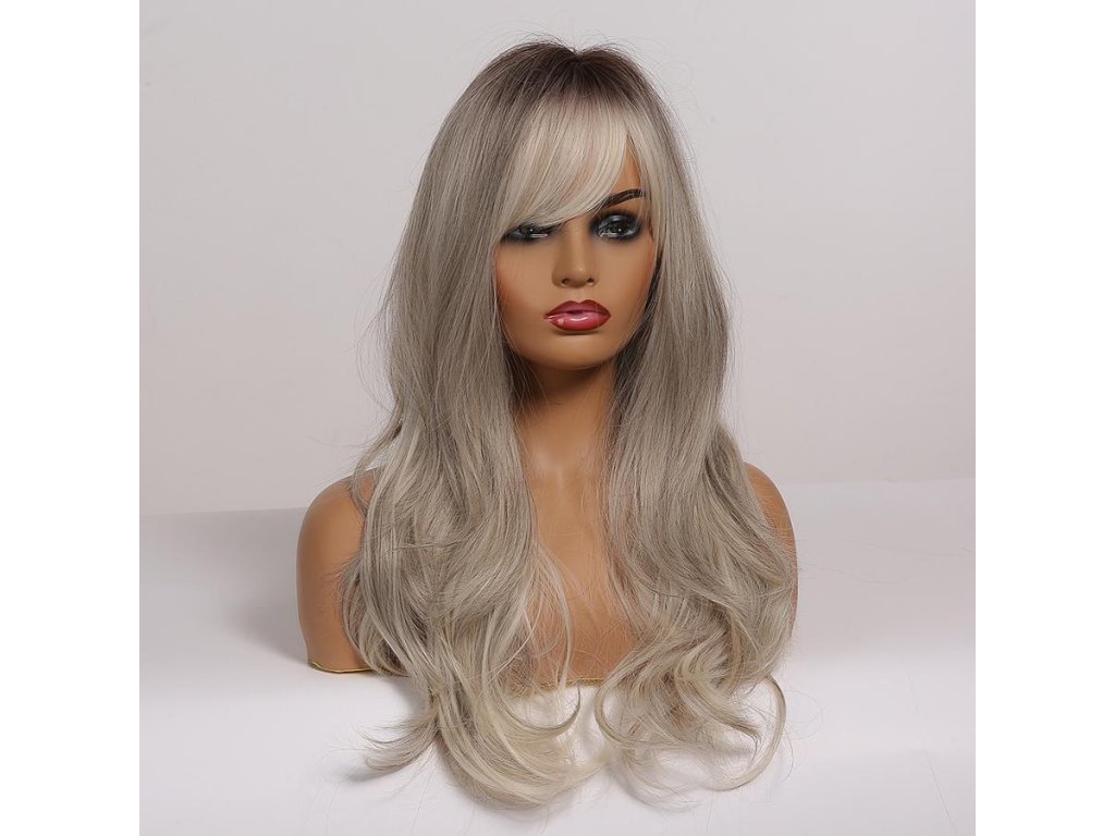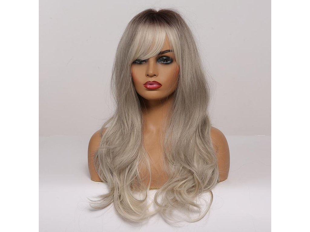 Krásná světle šedá vlnitá paruka s tmavými kořínky. Je vyrobena z kvalitních syntetických vláken, které jsou zárukou pohodlného nošení.