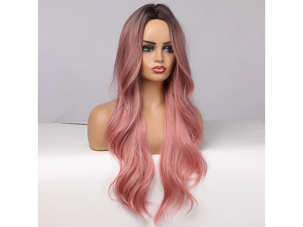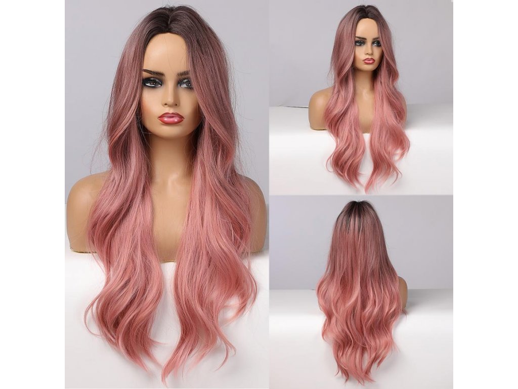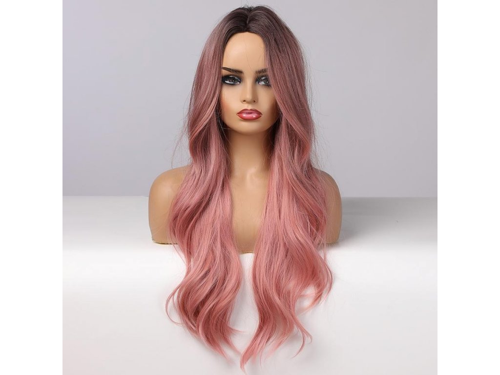 Krásná vlnitá růžová paruka s černými kořínky. Je vyrobena z kvalitních syntetických vláken, které jsou zárukou pohodlného nošení.