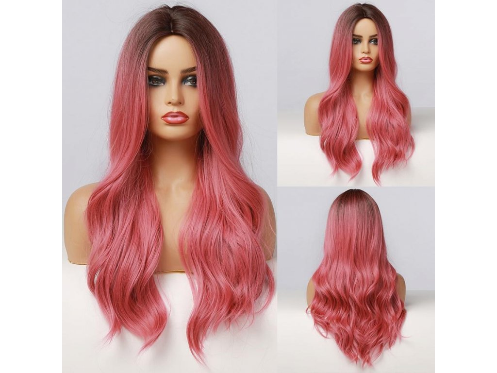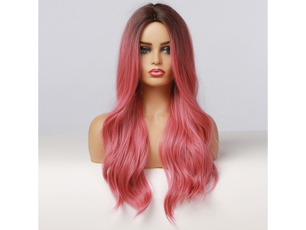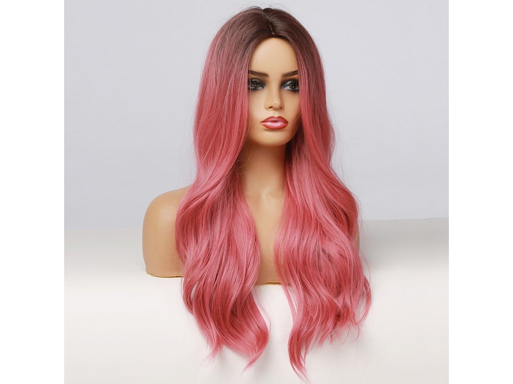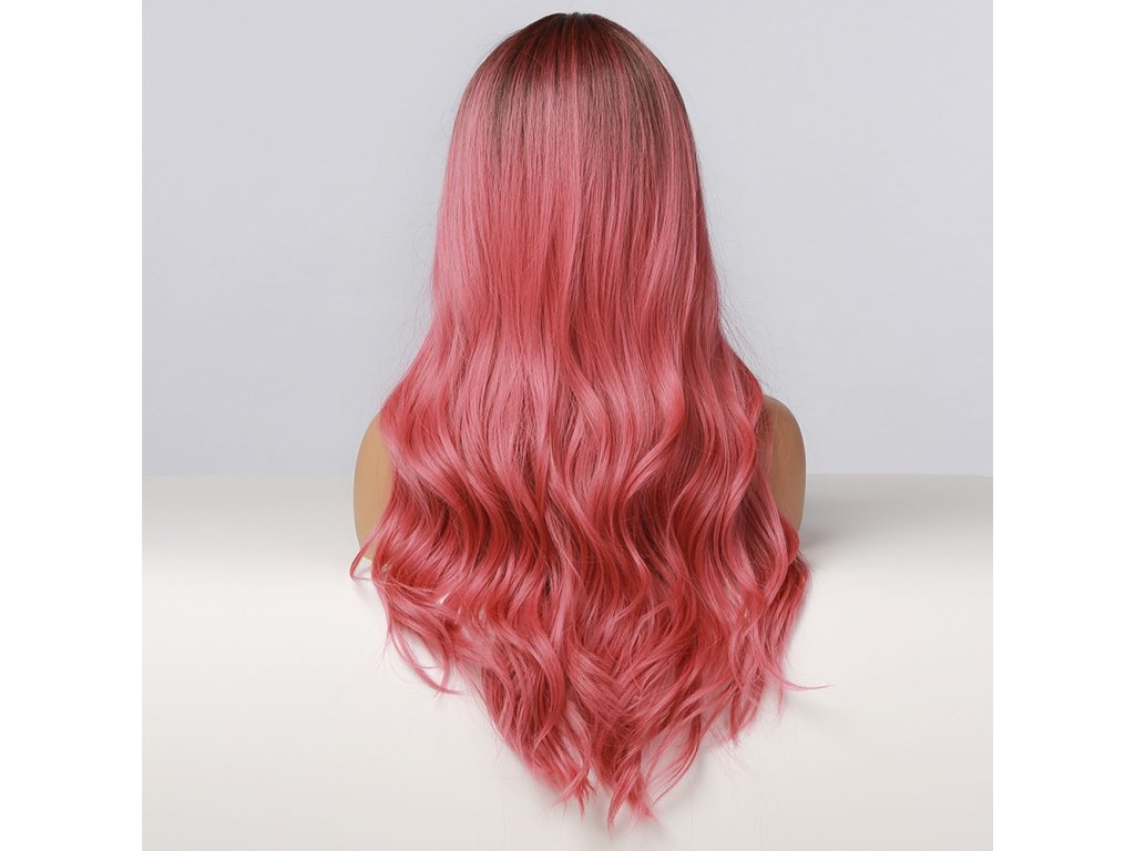 Krásná růžová vlnitá paruka s tmavými kořínky. Je vyrobena z kvalitních syntetických vláken, které jsou zárukou pohodlného nošení.