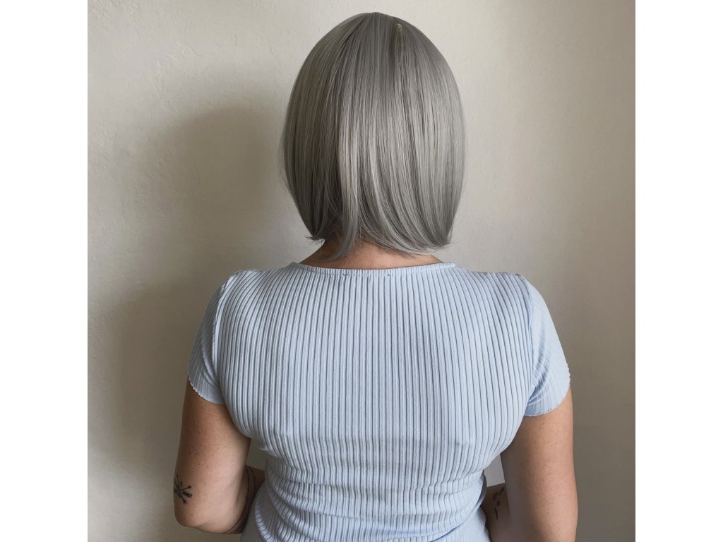 Krásná krátká šedá paruka s ofinou přes celé čelo. Je vyrobena z kvalitních syntetických vláken, které jsou zárukou pohodlného nošení.