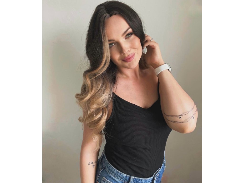 Černá vlnitá paruka Mariah s hnědými konečky, LC328-1
