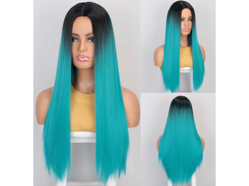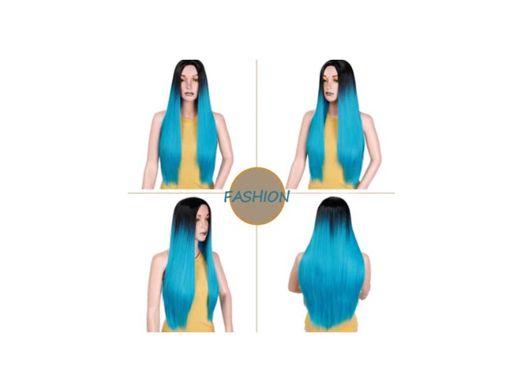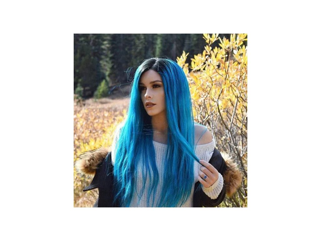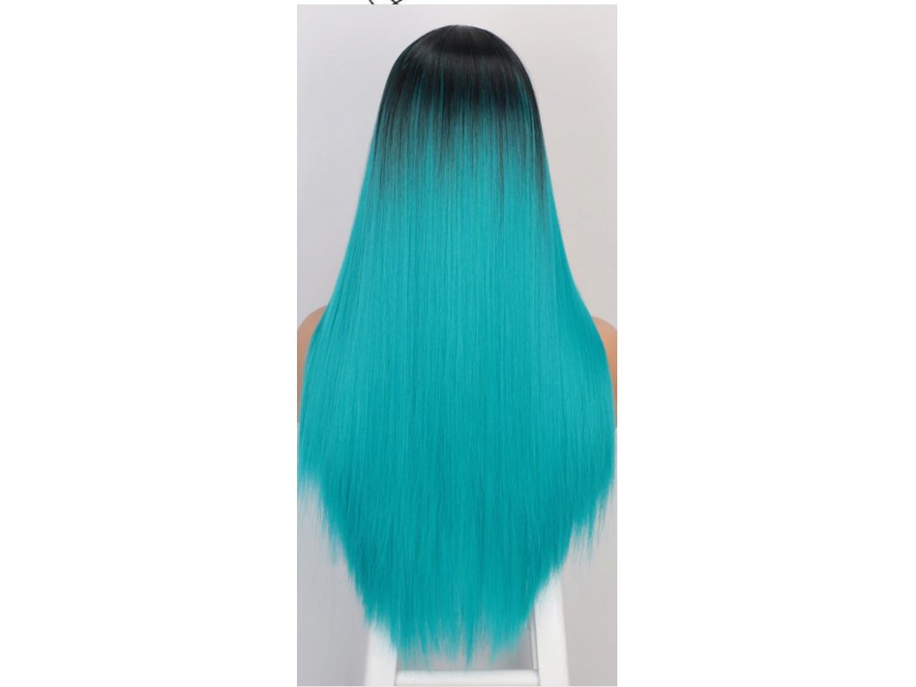 Krásná modrá rovná paruka s černými kořínky. Je vyrobena z kvalitních syntetických vláken, které jsou zárukou pohodlného nošení.