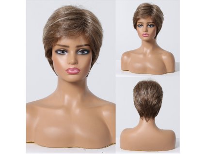 extra krátká hnědá paruka, s ofinou, univerzální velikost, působivý dojem