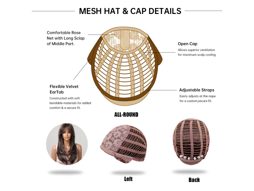 Z výběru velikosti paruky nemusíte mít žádné obavy. Velikost je nastavitelná od S (small) přes M (medium) až po L (large). Nastavíte si ji jednoduše pomocí řemínku a háčku, který je umístěn z vnitřní strany paruky,