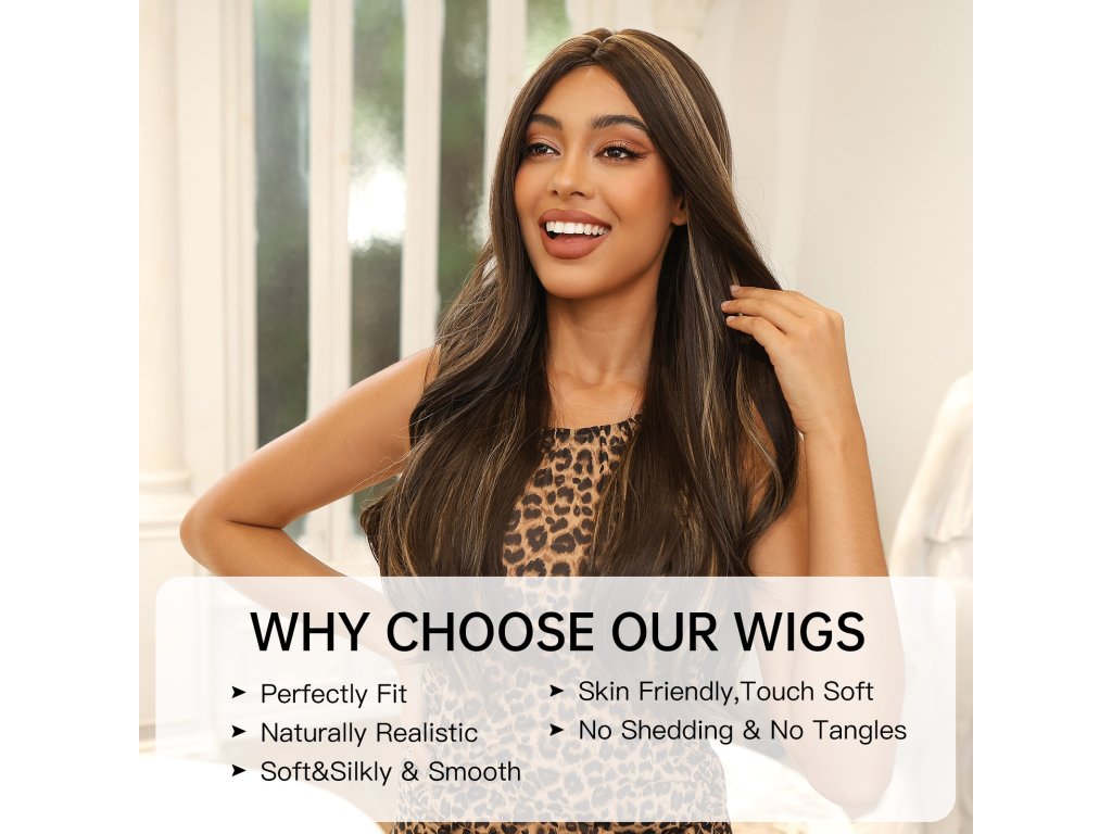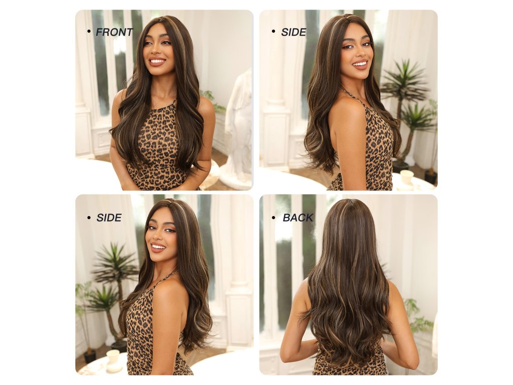 Nádherná paruka v hnědé barvě se světlými melíry. Dlouhé vlasy s lehkou vlnou. Je vyrobena z kvalitního syntetického vlákna, velice příjemného na dotek, svou jemností připomíná lidské vlasy.