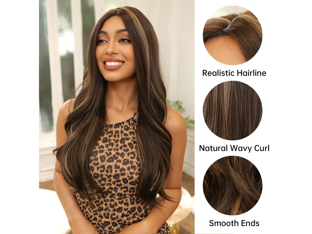 Dlouhá hnědá paruka Stacey s lehkými melíry