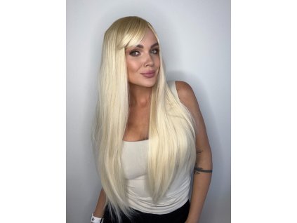 dlouhá blond paruka, s ofinou, ombré přechod od kořínků působivý dojem