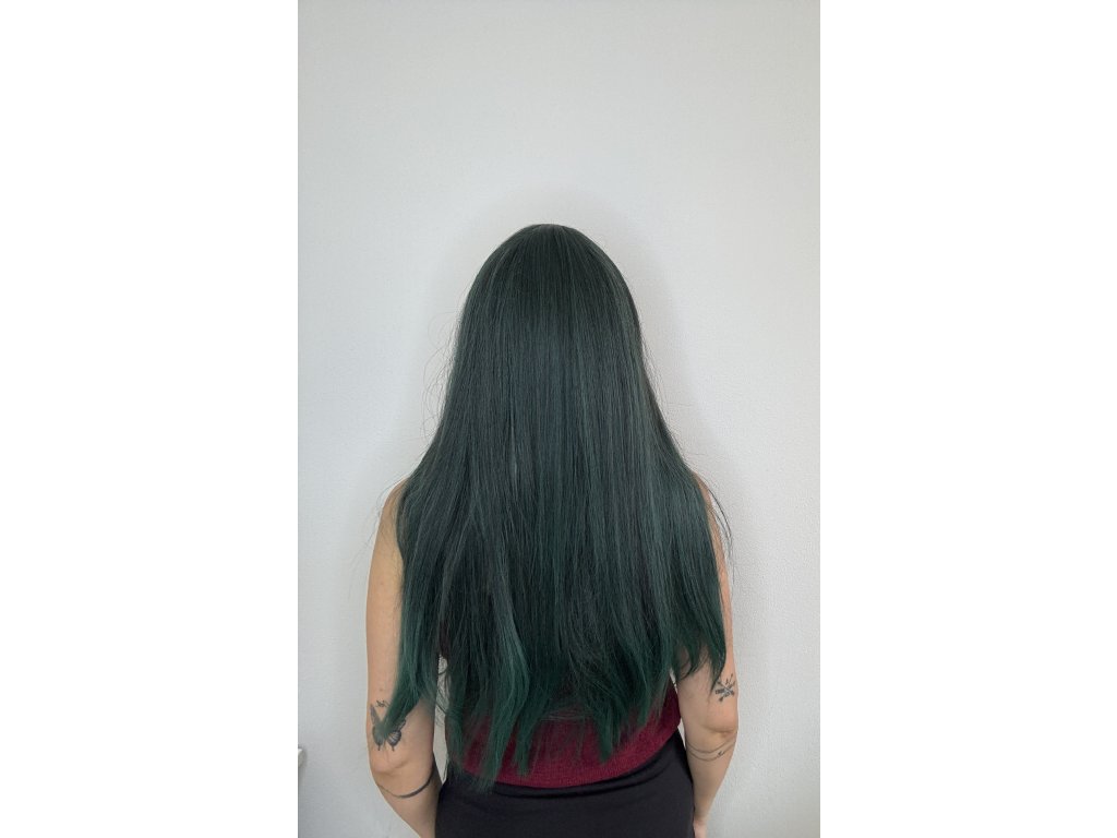Krásná a dlouhá olivově zelená paruka s elegantními rovnými vlasy. S perfektní ofinou. Je vyrobena z kvalitního syntetického vlákna, velice příjemného na dotek, svou jemností připomíná lidské vlasy.