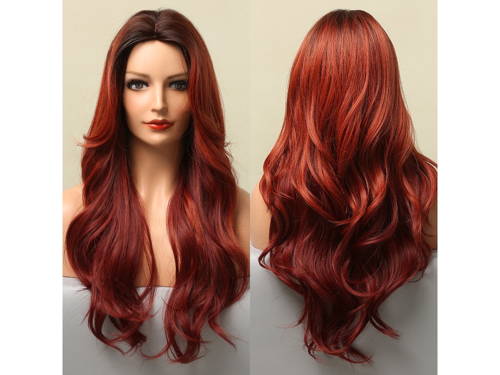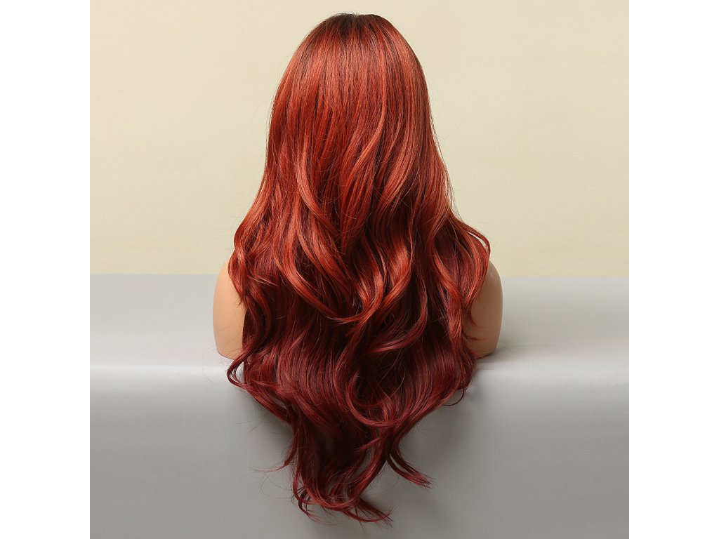 DLOUHÁ RUBÍNOVĚ ČERVENÁ PARUKA JOHANNA S PŘIROZENÝM ODROSTEM