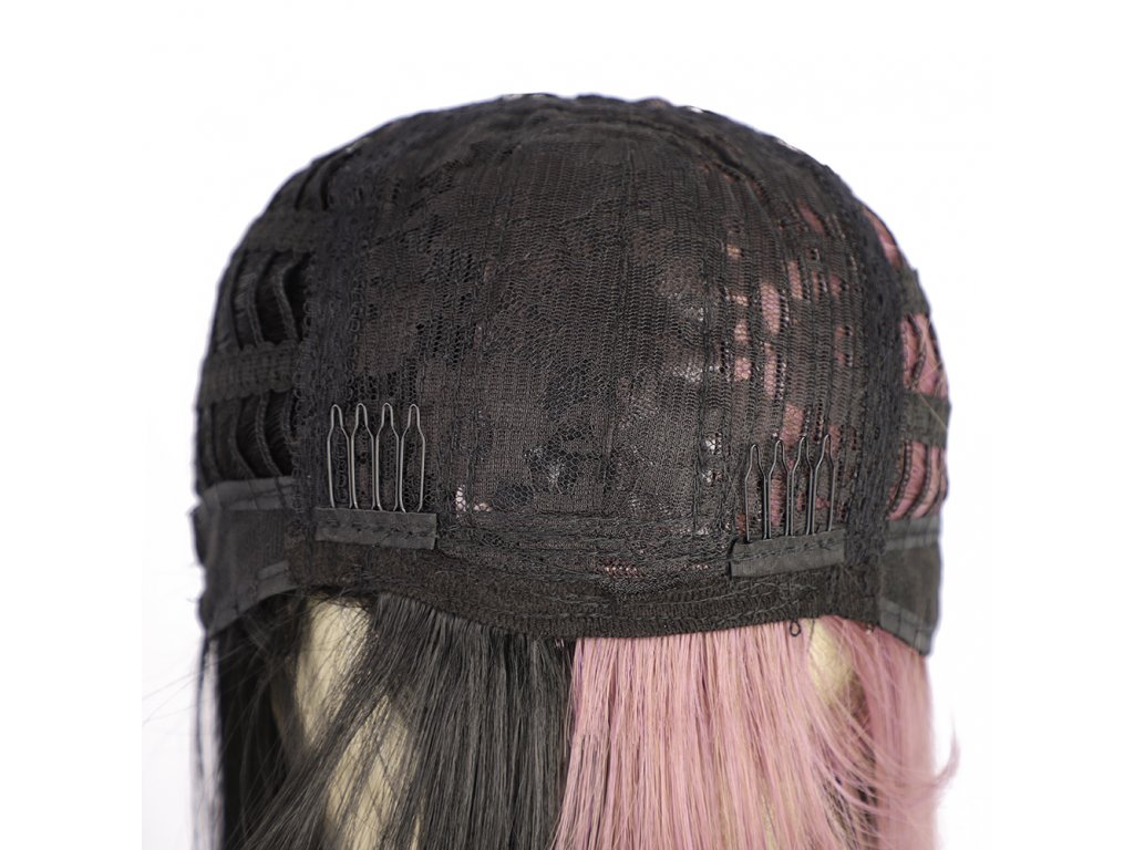 Krásná double růžovo-hnědá paruka. S dlouhými vlasy a elegantní ofinou. Je vyrobena z kvalitního syntetického vlákna, velice příjemného na dotek, svou jemností připomíná lidské vlasy.