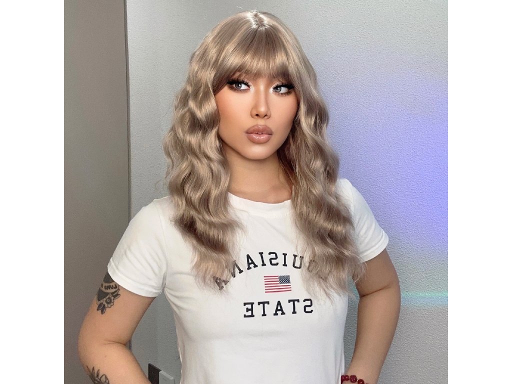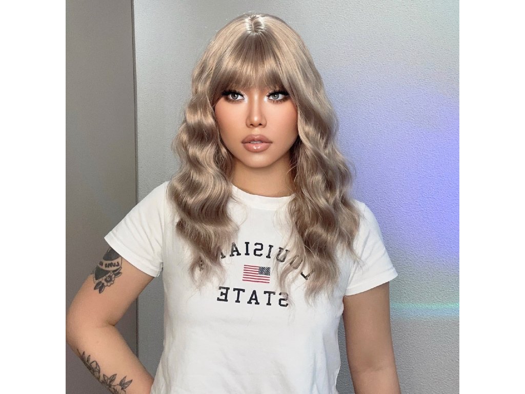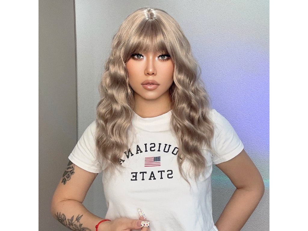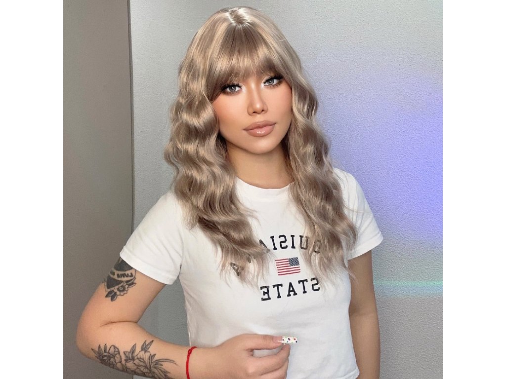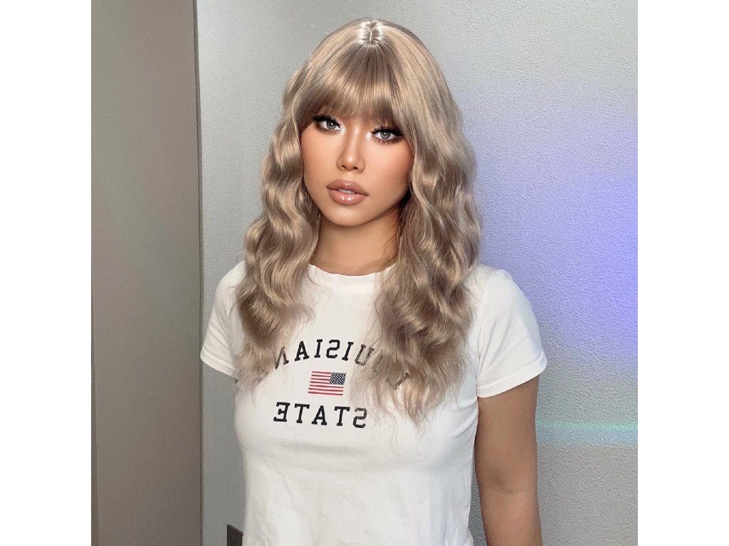 Elegantní perleťová blond paruka Taylor s jemnými vlnami a rovnou ofinou