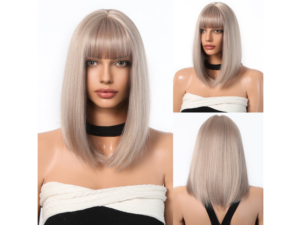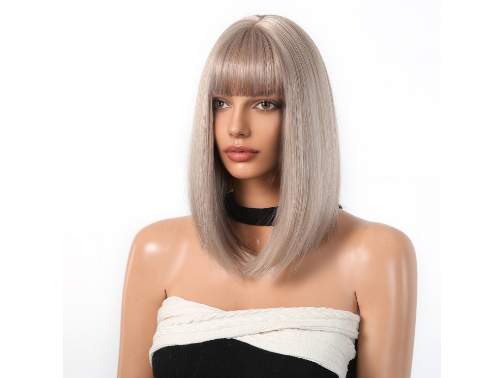 Tato elegantní rovná paruka s moderní ofinou kombinuje přirozený stříbrný odstín s jemnými lesklými akcenty, které dodávají styl a šmrnc, a její krátká délka opticky zeštíhluje obličej a podtrhuje ženské rysy. Díky precizně zpracovaným vlasům z vysoce kvalitního materiálu působí tato paruka naprosto přirozeně, zatímco rovný střih dodává účesu luxusní jednoduchost. Ofina je pečlivě navržena tak, aby byla univerzální a ladila s různými tvary obličeje, a zároveň jemně rámuje čelo, čímž zdůrazňuje oči a lícní kosti. Stříbrný odstín přechází do decentního šedohnědého tónu, což vytváří sofistikovaný a harmonický vzhled, který se hodí jak pro každodenní nošení, tak i na slavnostní příležitosti. Lehká a prodyšná konstrukce paruky zaručuje maximální pohodlí i při delším nošení, takže se stane ideálním společníkem na dlouhé dny i noci. Celkově je tato paruka dokonalým doplňkem pro ty, kdo hledají eleganci s moderním nádechem.