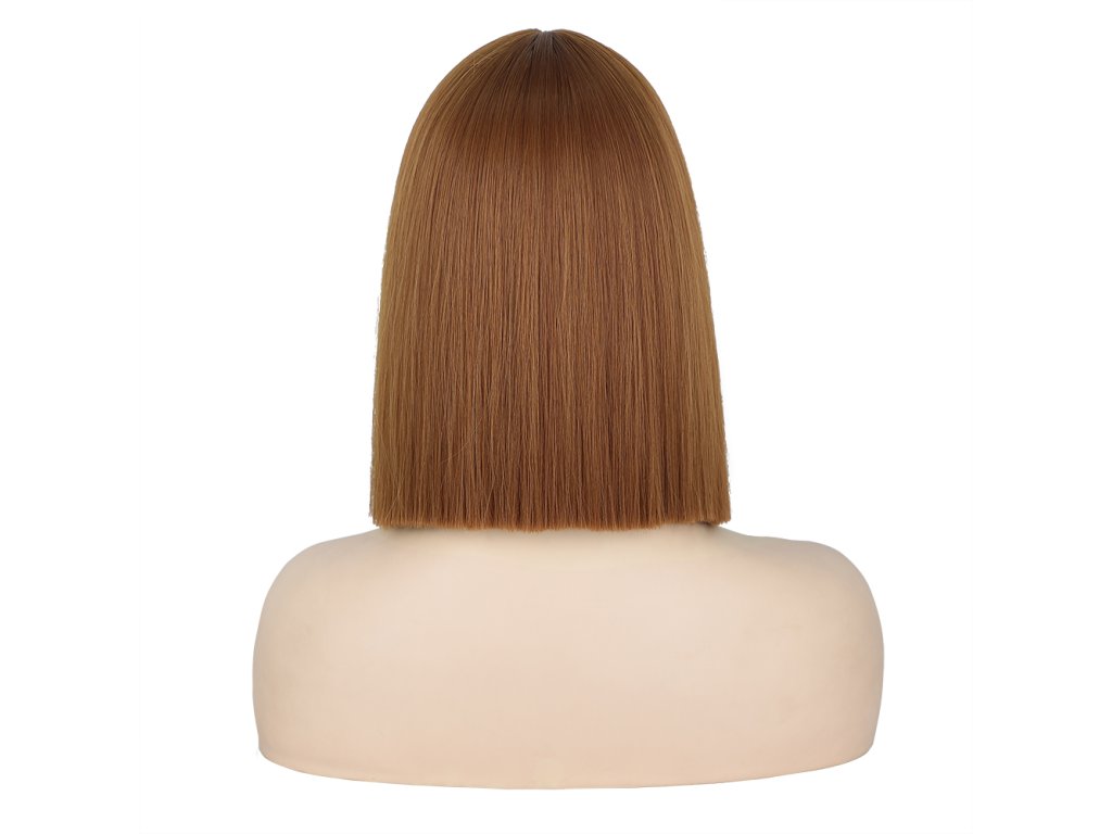 Krásná karamelově hnědá paruka. Krátké rovné vlasy, střižené pod bradu. Elegantní rovný střih. Je vyrobena z kvalitního syntetického vlákna, velice příjemného na dotek, svou jemností připomíná lidské vlasy.