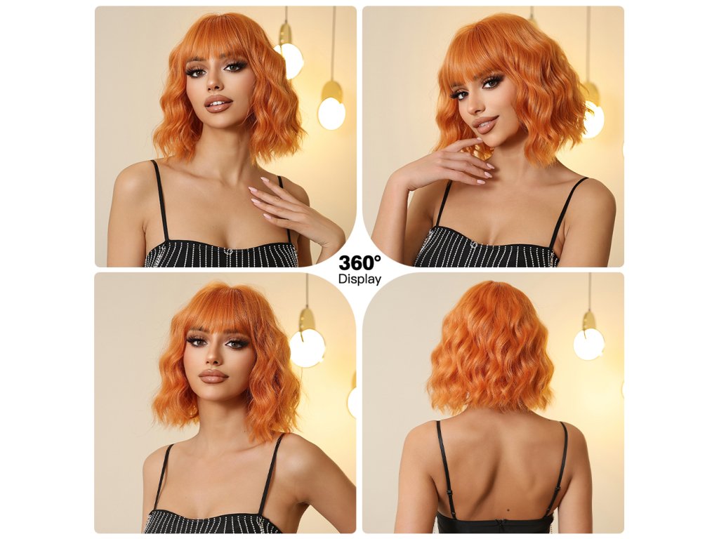 Tato krátká paruka v pastelově oranžovém odstínu je perfektní volbou pro ty, kteří chtějí vyniknout. Jemné vlny dodávají účesu hravost a elegantní strukturu, zatímco rovná ofina rámuje obličej s půvabem. Díky trendy barevnému provedení se hodí na festivaly, focení, ale i jako originální doplněk na večírek. Materiál vypadá přirozeně a je příjemný na dotek, což zajišťuje pohodlné nošení po celý den. Snadná údržba z ní dělá ideální volbu i pro každodenní využití. S touto parukou vytvoříte nezapomenutelný dojem na každé příležitosti.