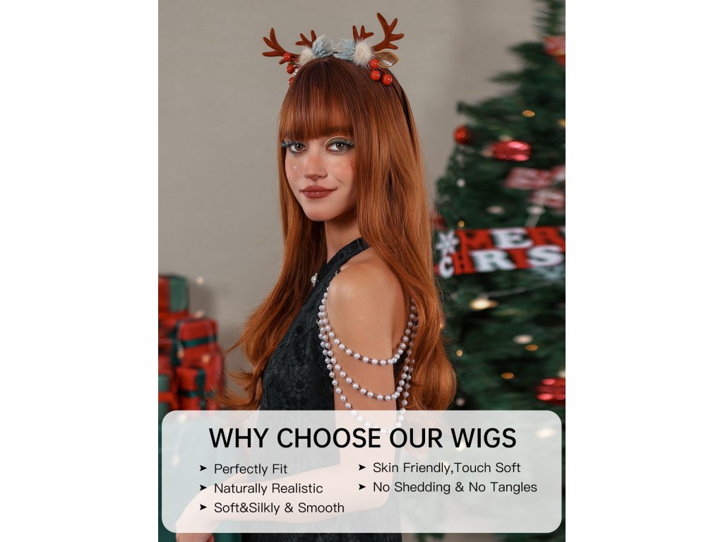 medově hnědá barva, rovné vlasy, mikádo, melírování, ofina, elegantní sestřih, extra lesk, syntetická paruka, působivý dojem