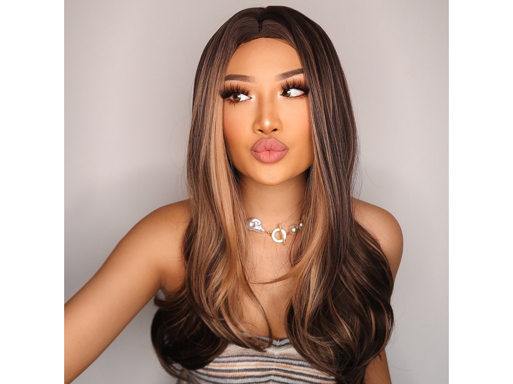 Krásná čokoládově hnědá vlnitá paruka s melírem .Je vyrobena z kvalitního syntetického vlákna, velice příjemného na dotek, svou jemností připomíná lidské vlasy.