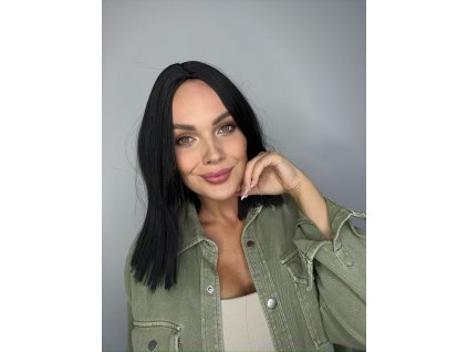 havraní černá paruka, mikádo, rovné lesklé vlasy, střih pod bradu, zářivá barva, působivý dojem!