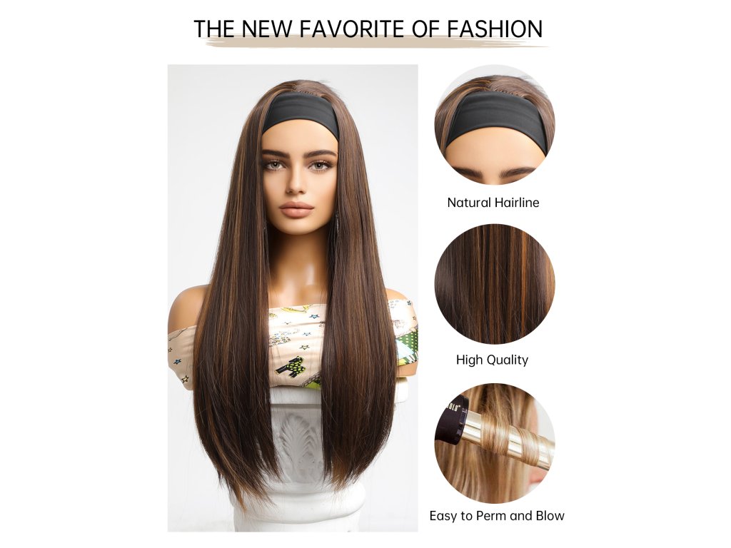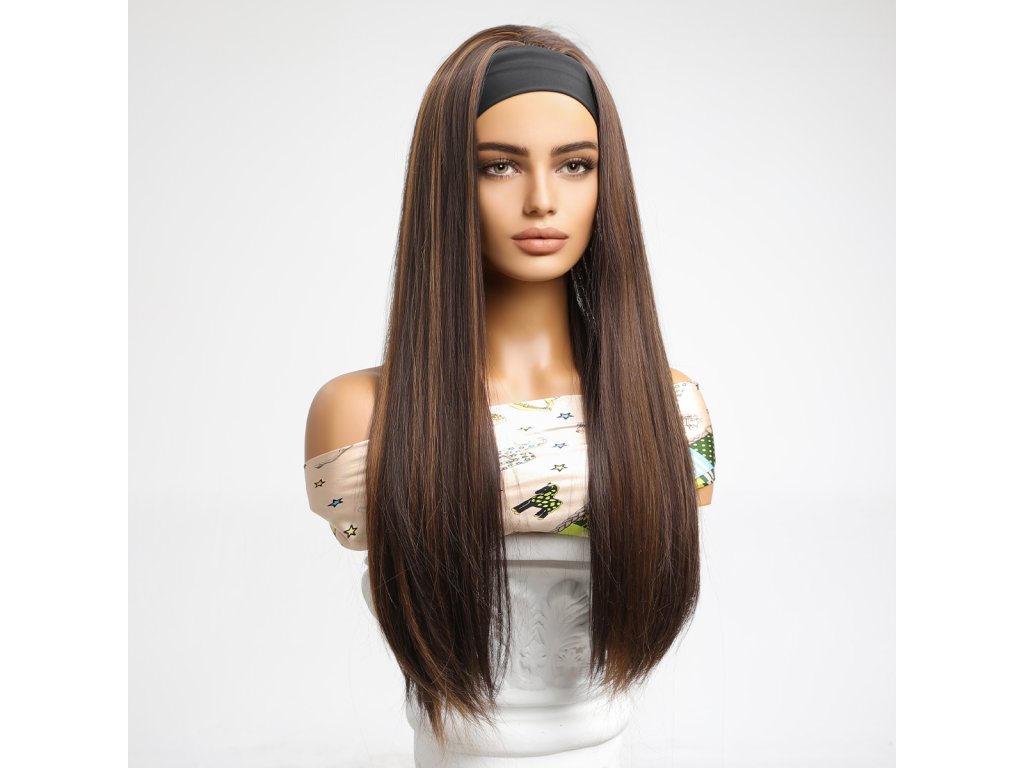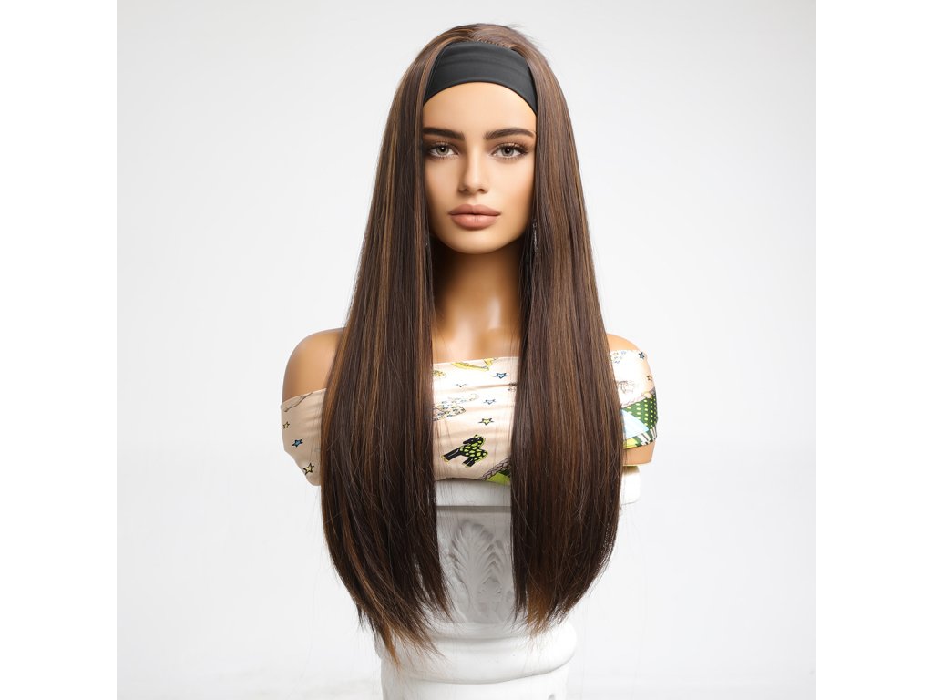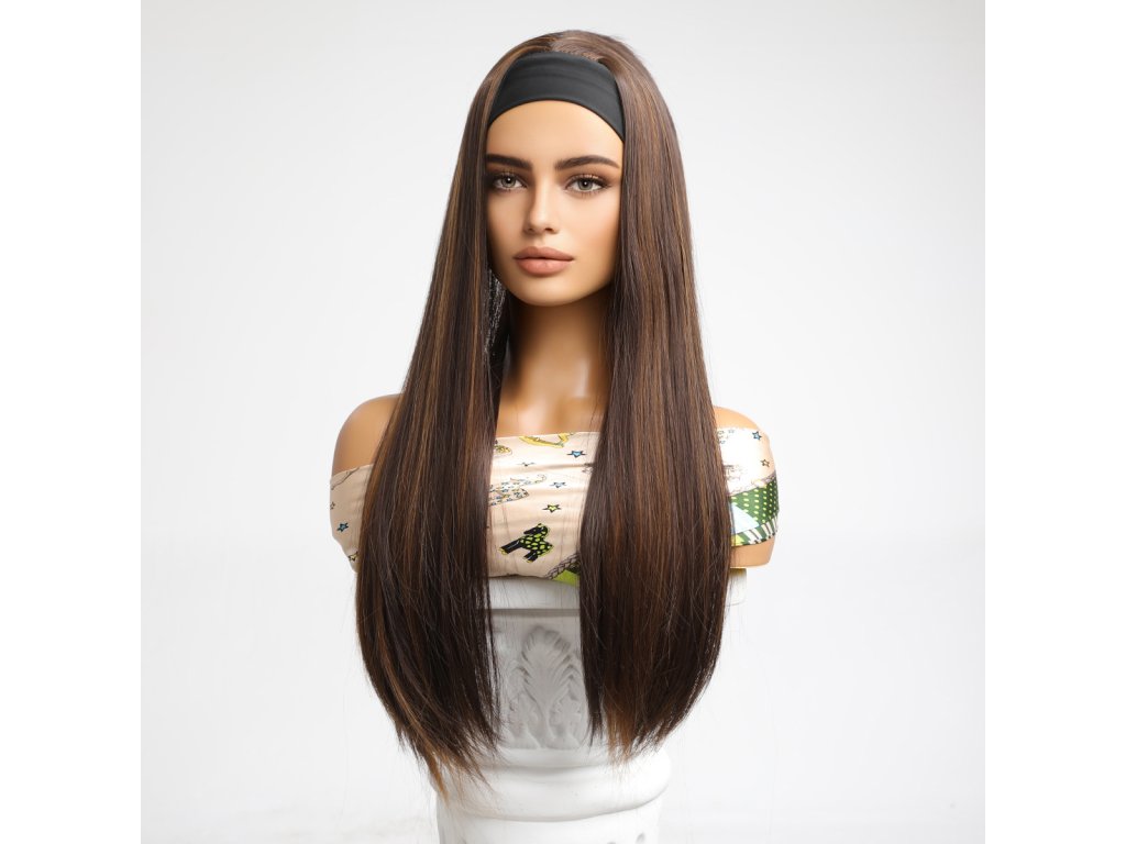 Hnědá paruka Grace s melírováním a s čelenkou efektivně splyne s přirozeným přechodem vlasů!