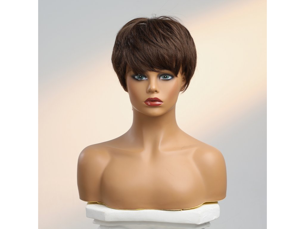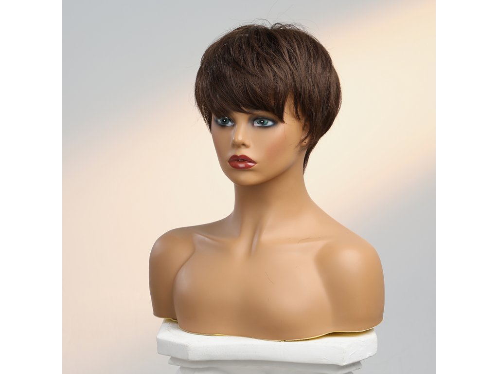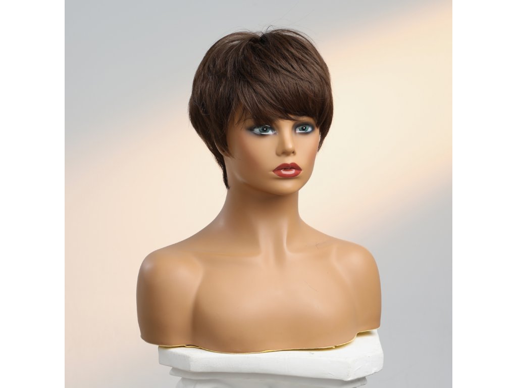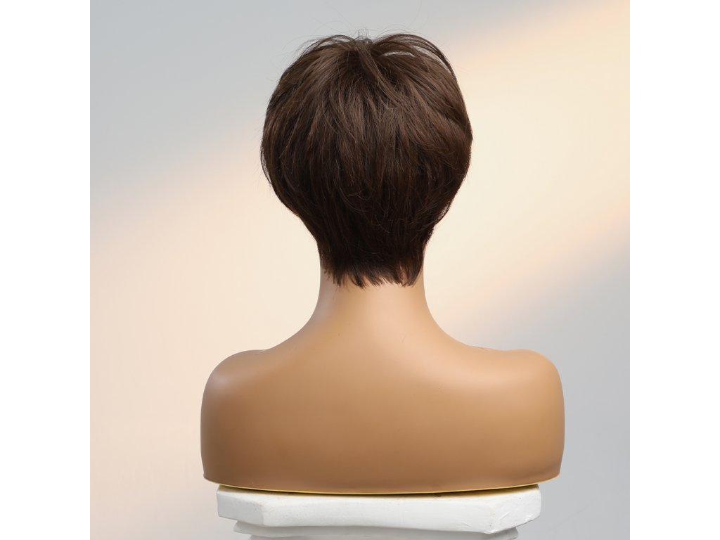 Krátká hnědá paruka z pravých a umělých vlasů Ygrette