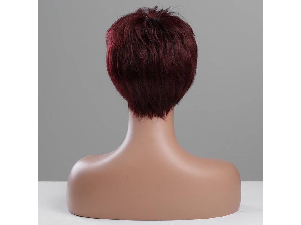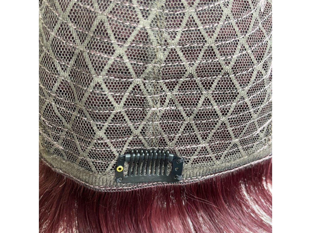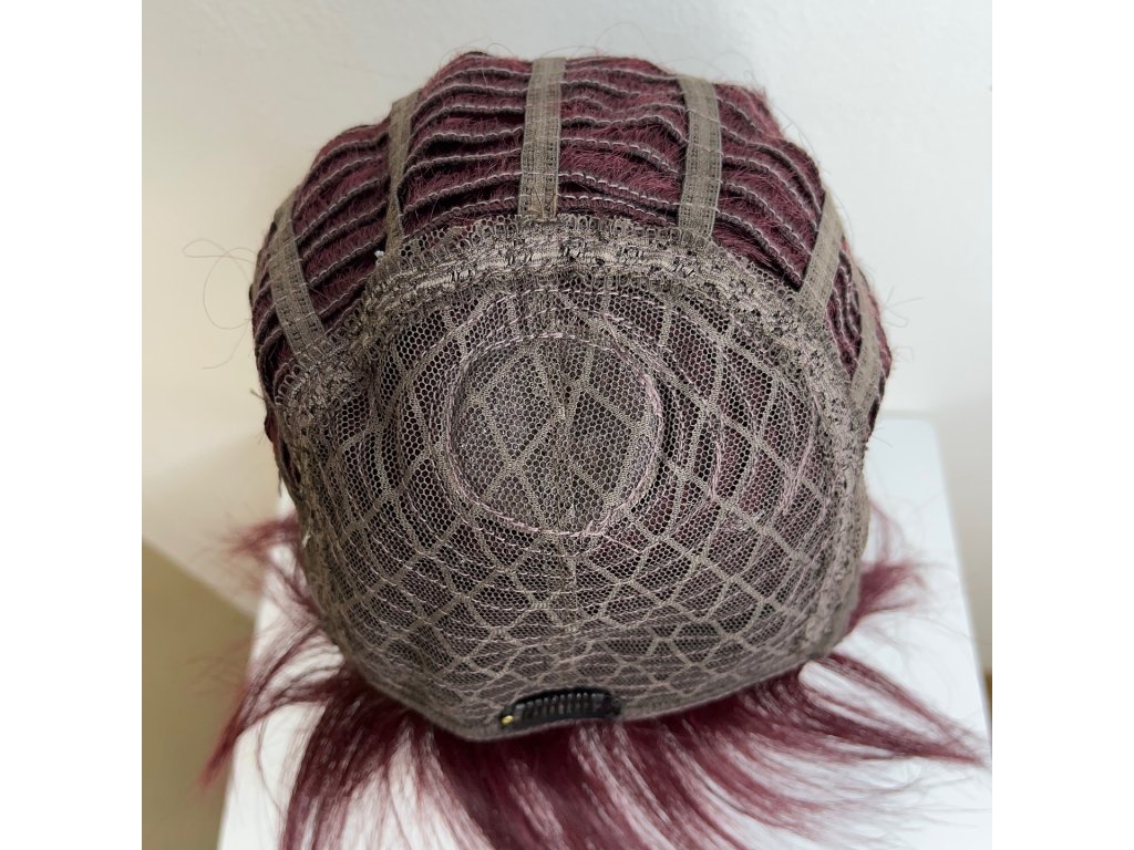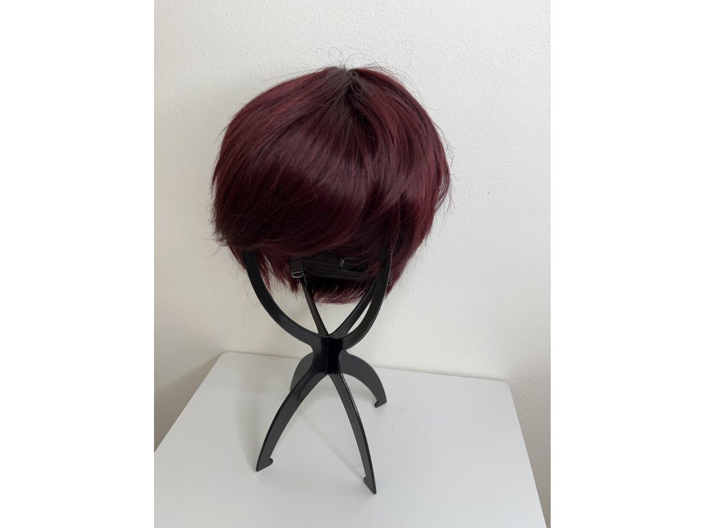 Krátká vínově fialová paruka z pravých a umělých vlasů