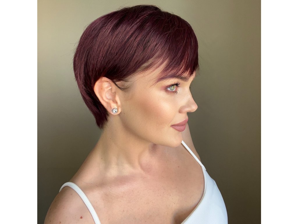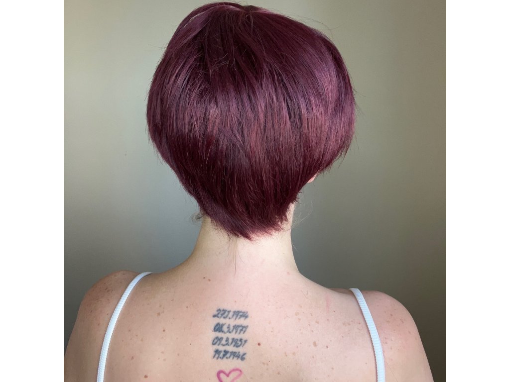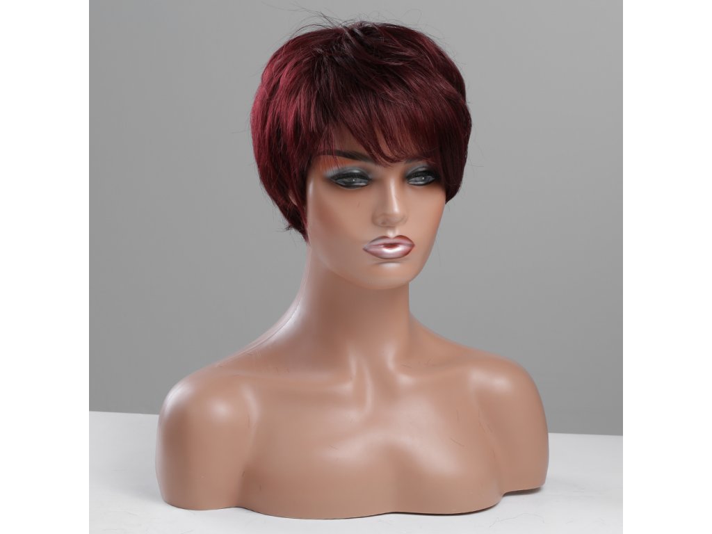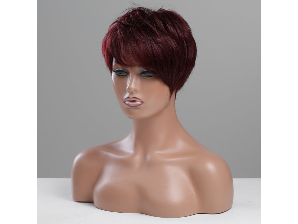 Krátká vínově fialová paruka z pravých a umělých vlasů