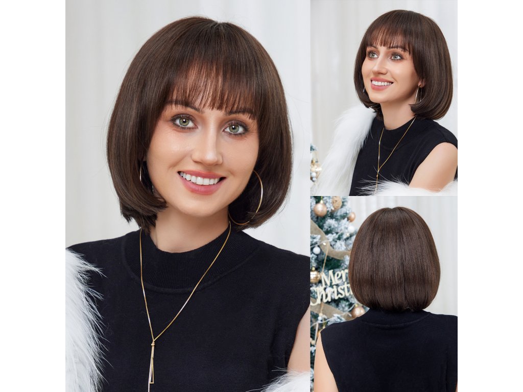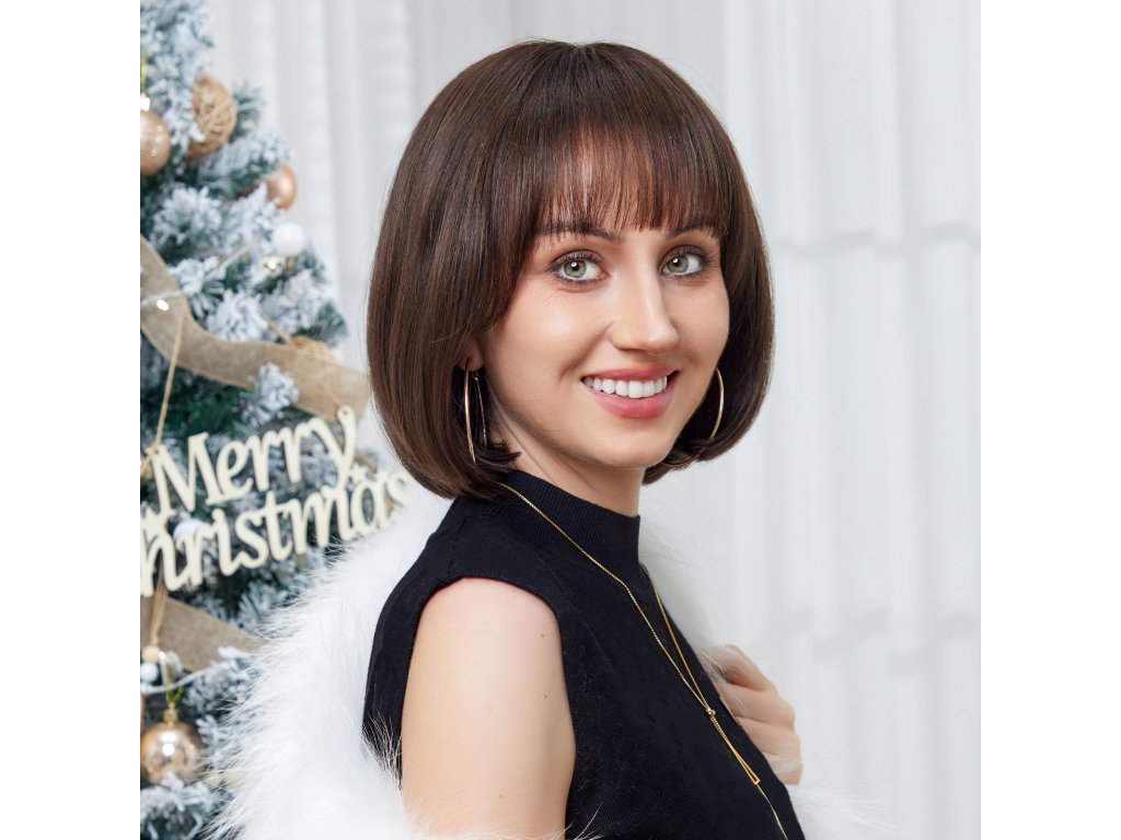 Tmavě hnědá mikádo paruka z pravých a umělých vlasů Karen