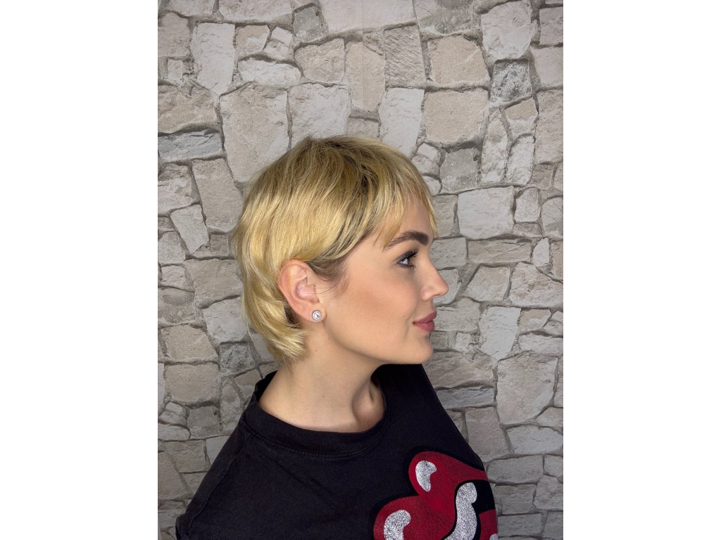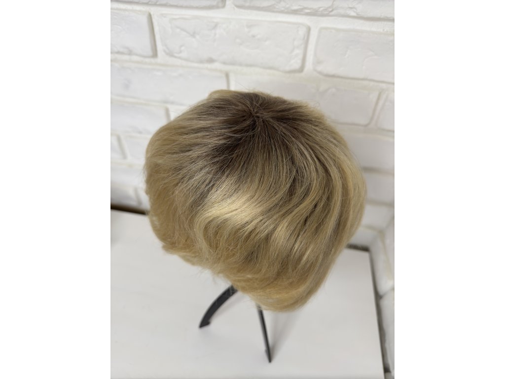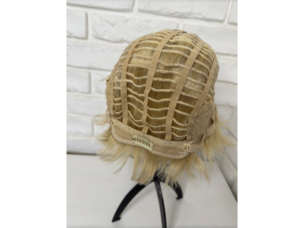 Zlatá blond pixie paruka z pravých a umělých vlasů Candy