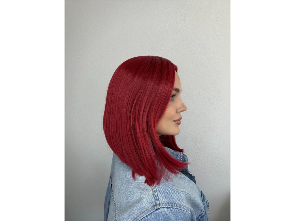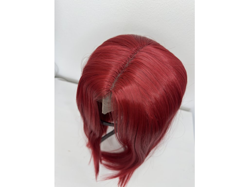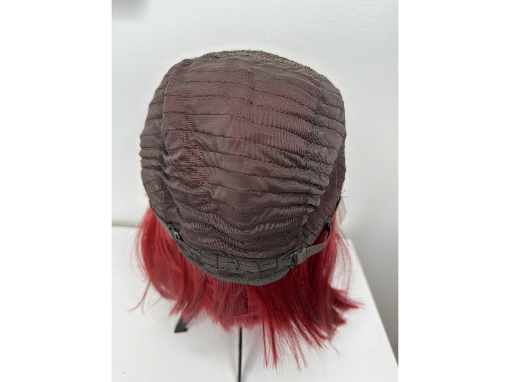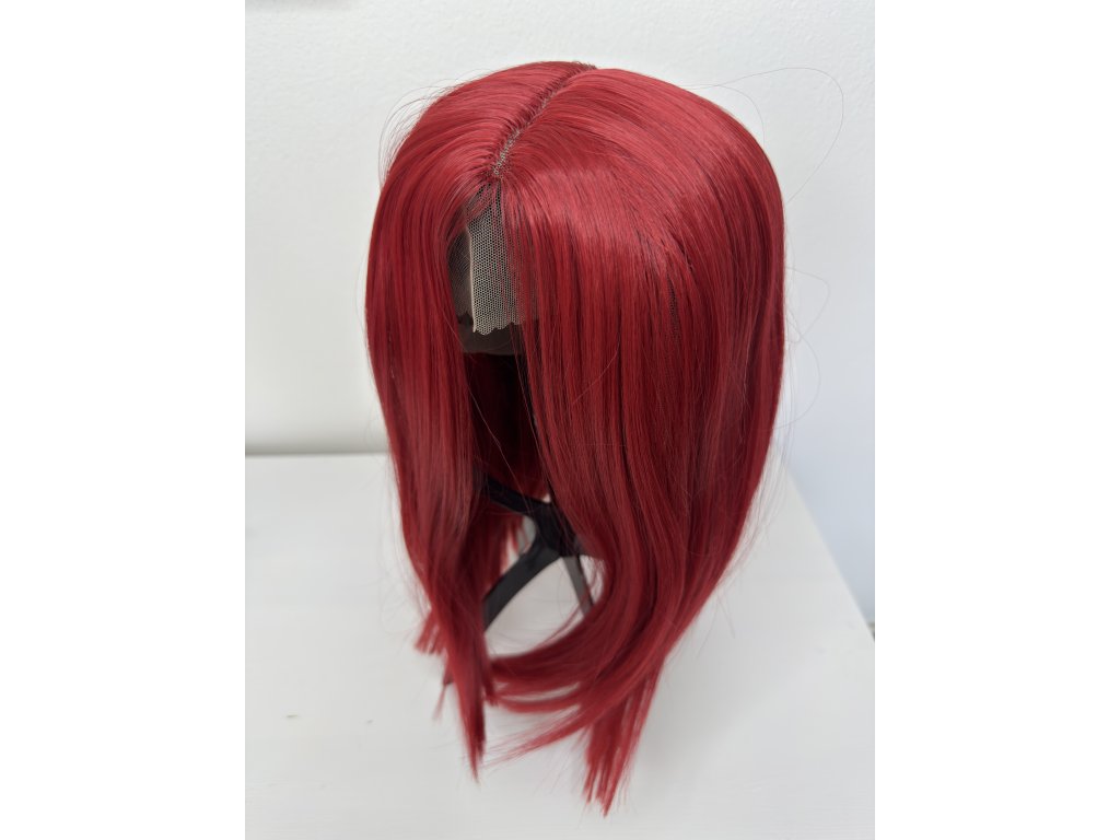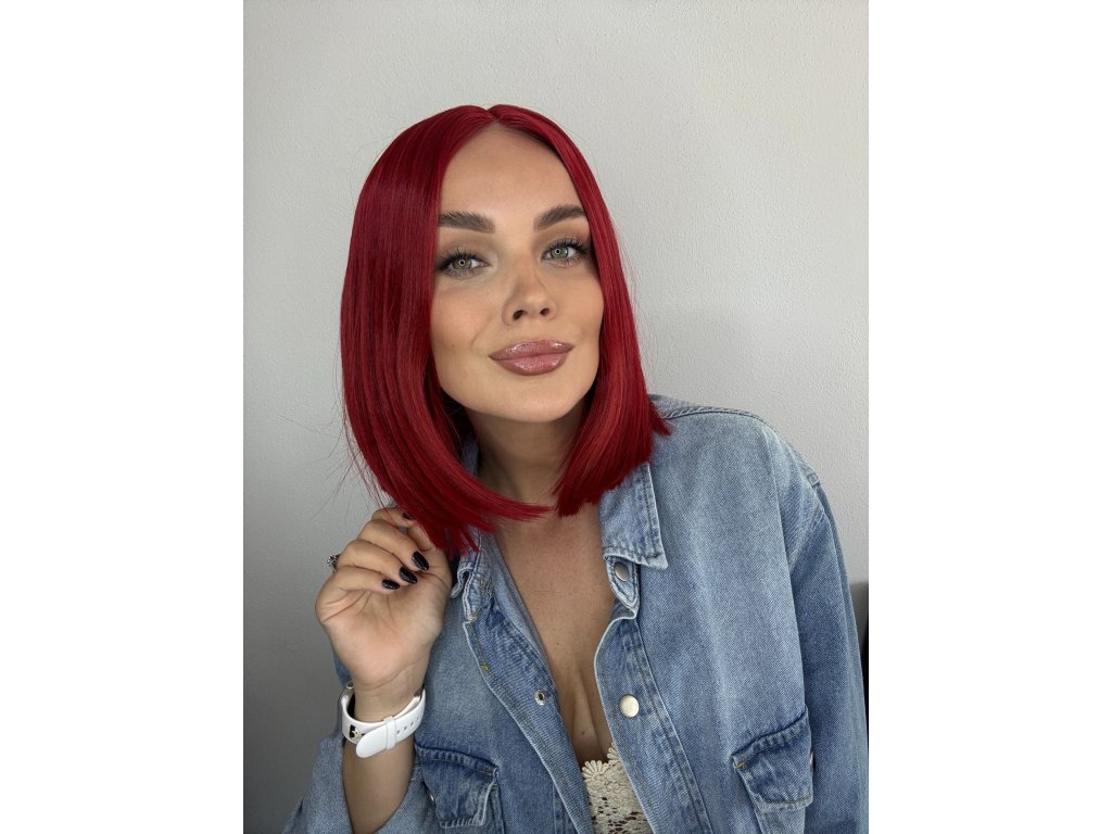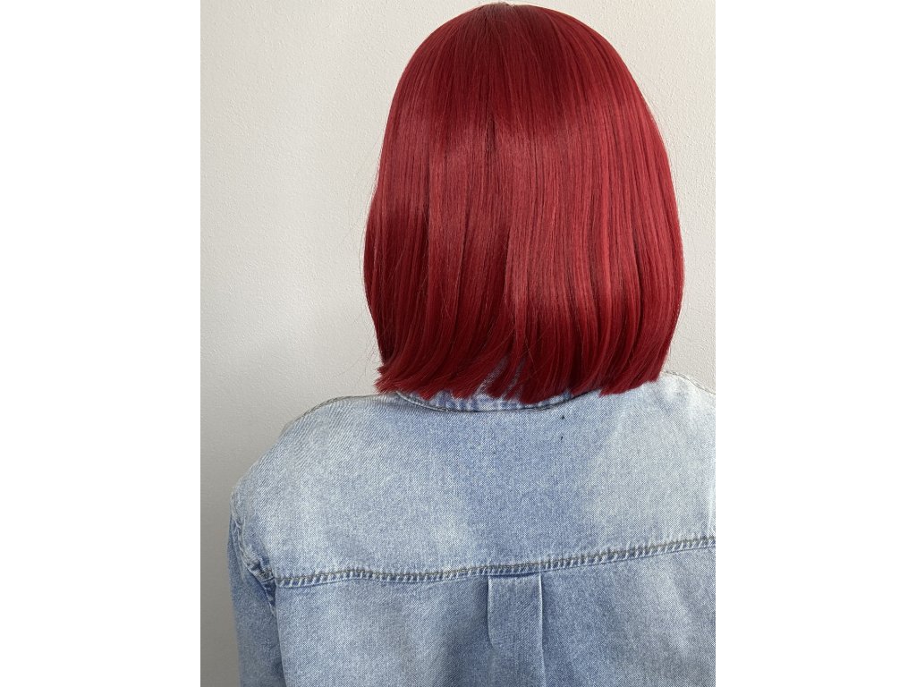 Vlasy jsou vyrobeny z kvalitního umělého vlákna. Krátká paruka lehce střižená do podkovy. Paruka je krásné výrazné červené barvy. Barva co dodá mladistvý vzhled.