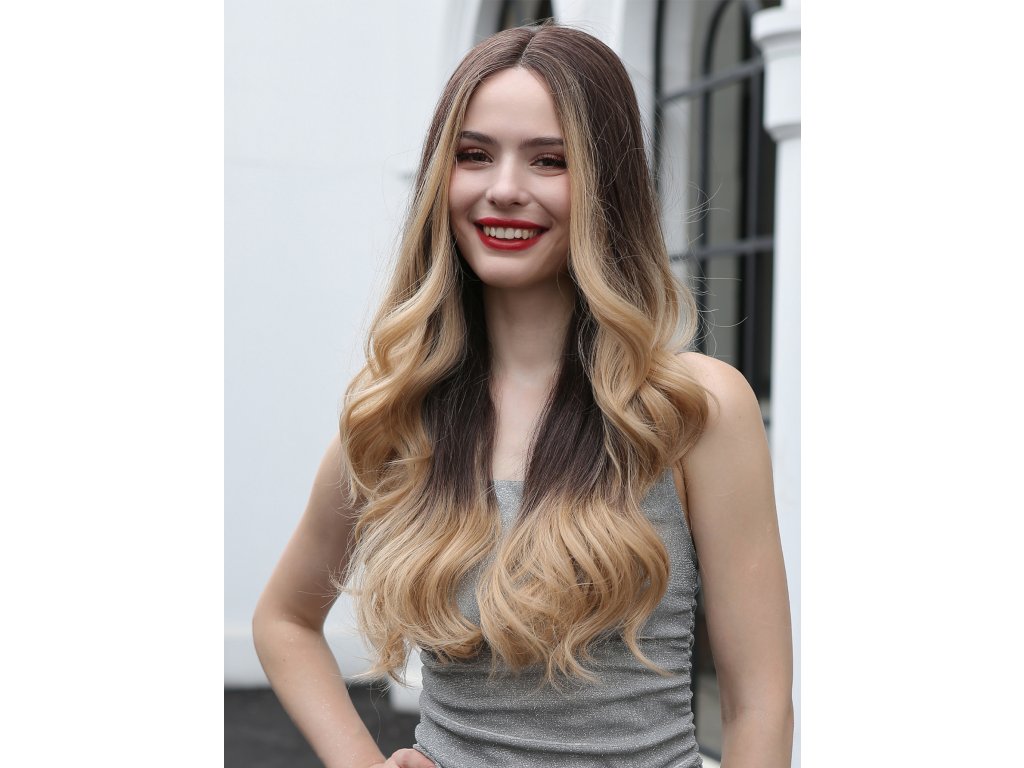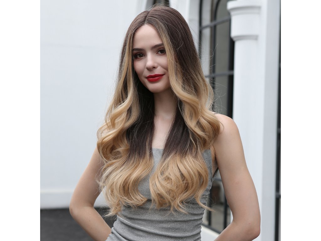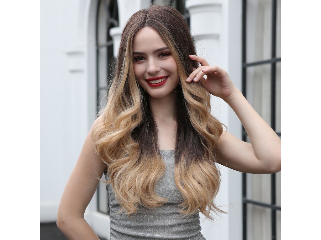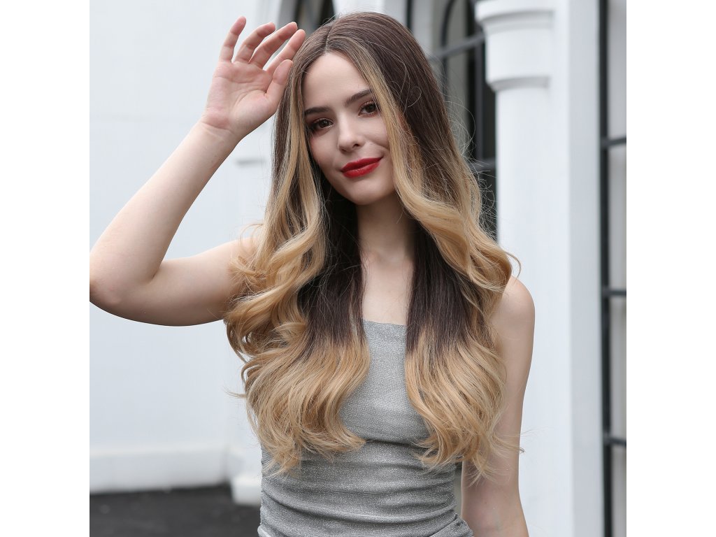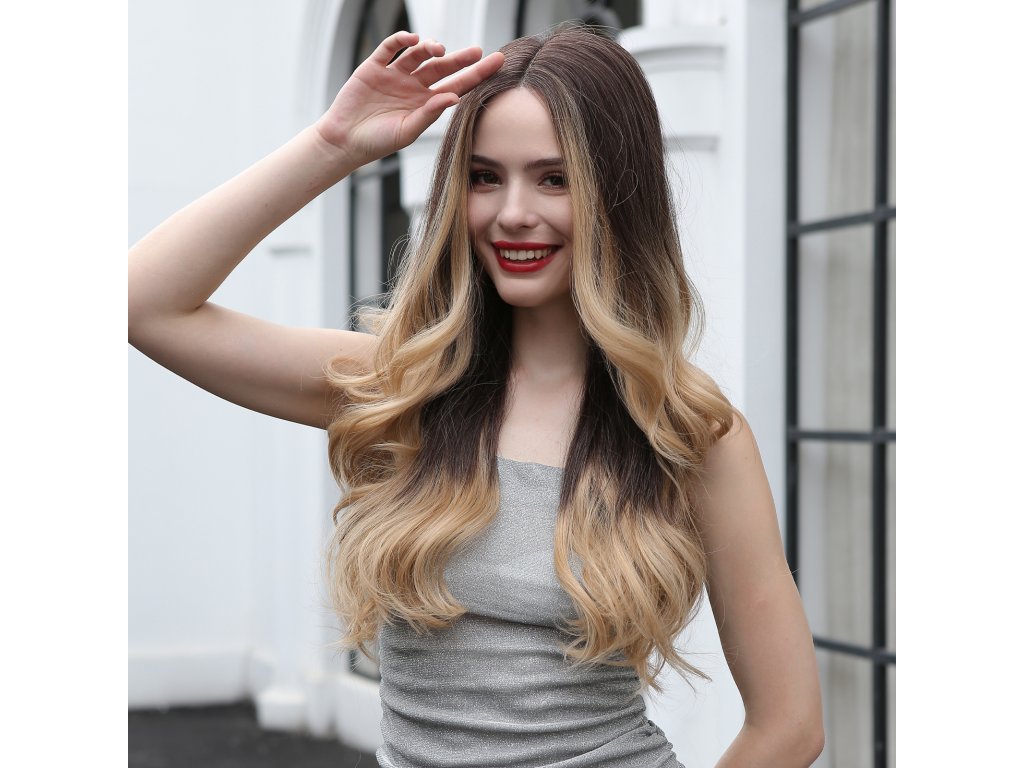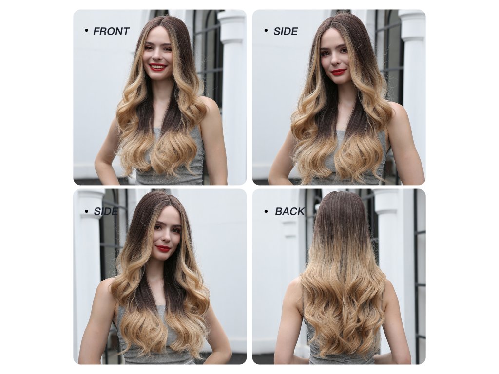 Paruka je vyrobena z prémiového syntetického vlákna velice příjemného na dotek, svou jemností připomíná lidské vlasy. Půvabný vzhled paruce dodává její moderní střih a lesklá hnědá barva s blond konci. Dlouhé a vlnité vlasy.