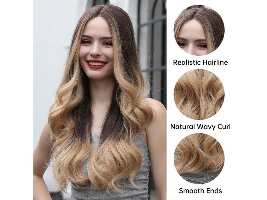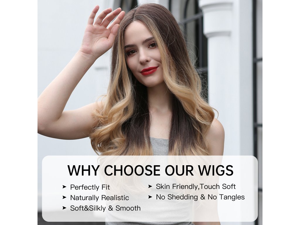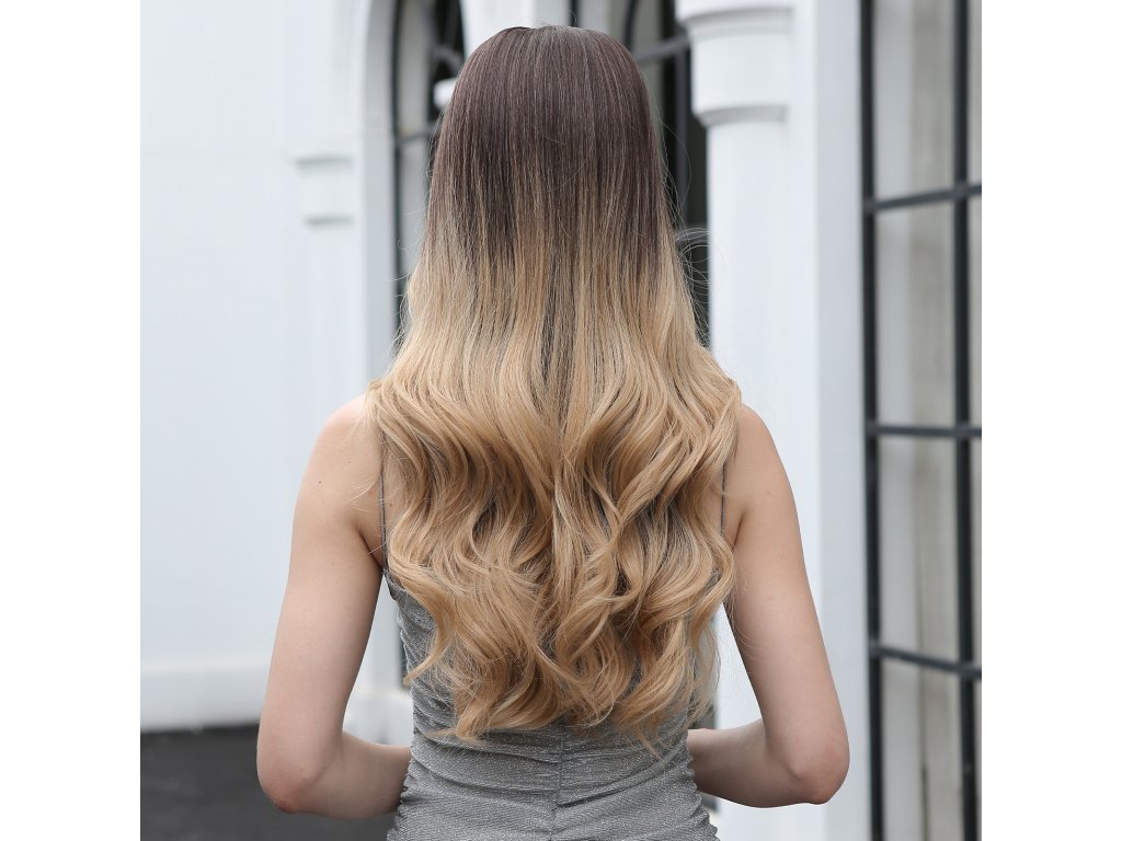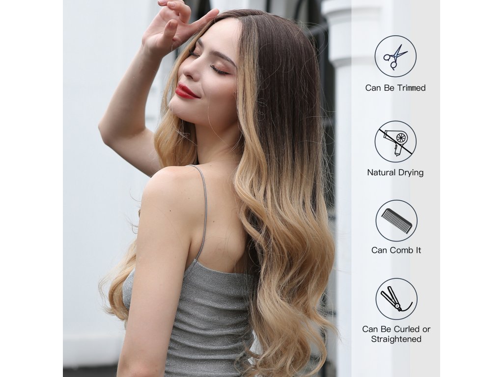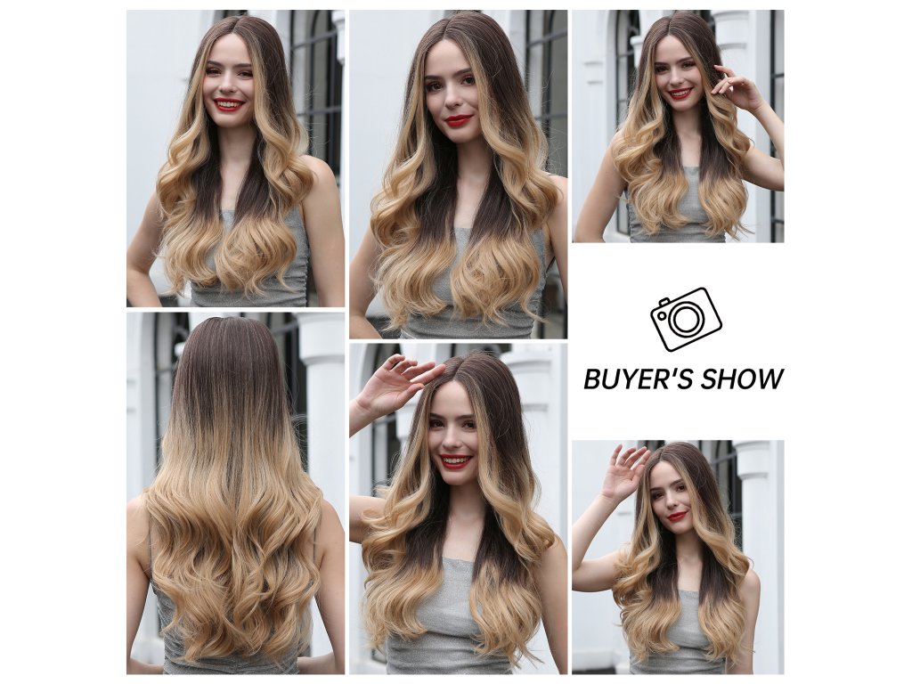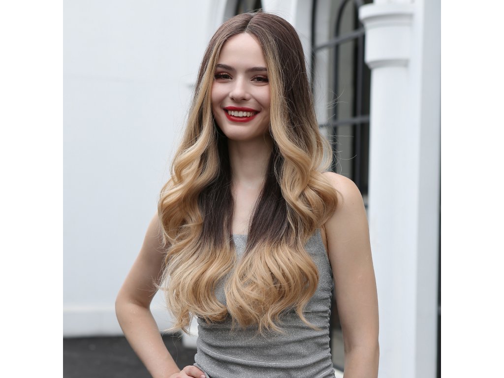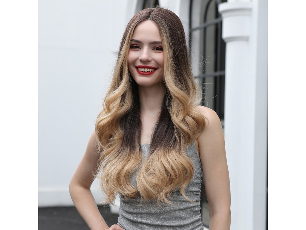 Paruka je vyrobena z prémiového syntetického vlákna velice příjemného na dotek, svou jemností připomíná lidské vlasy. Půvabný vzhled paruce dodává její moderní střih a lesklá hnědá barva s blond konci. Dlouhé a vlnité vlasy.