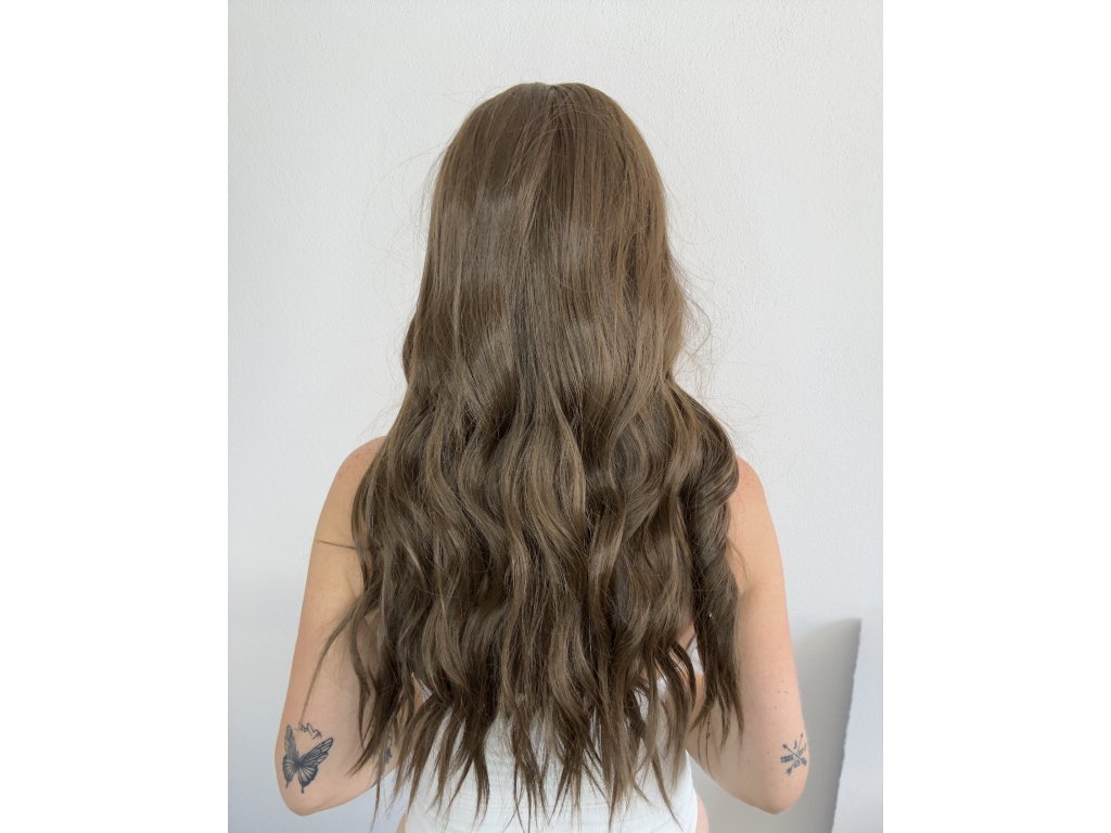 Paruka je vyrobena z prémiového syntetického vlákna velice příjemného na dotek, svou jemností připomíná lidské vlasy. Půvabný vzhled paruce dodává její moderní střih a oříškově hnědá barva. Dlouhé vlasy s jemnými vlnami.