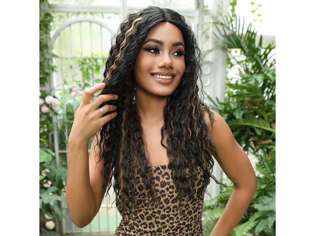 Paruka je vyrobena z prémiového syntetického vlákna velice příjemného na dotek, svou jemností připomíná lidské vlasy. Půvabný vzhled paruce dodává její moderní střih. Lesklá černá barva s decentními světle hnědými melíry. Elegantní dlouhé a kudrnaté vlasy.