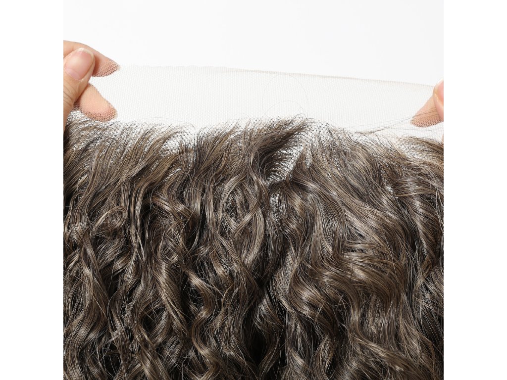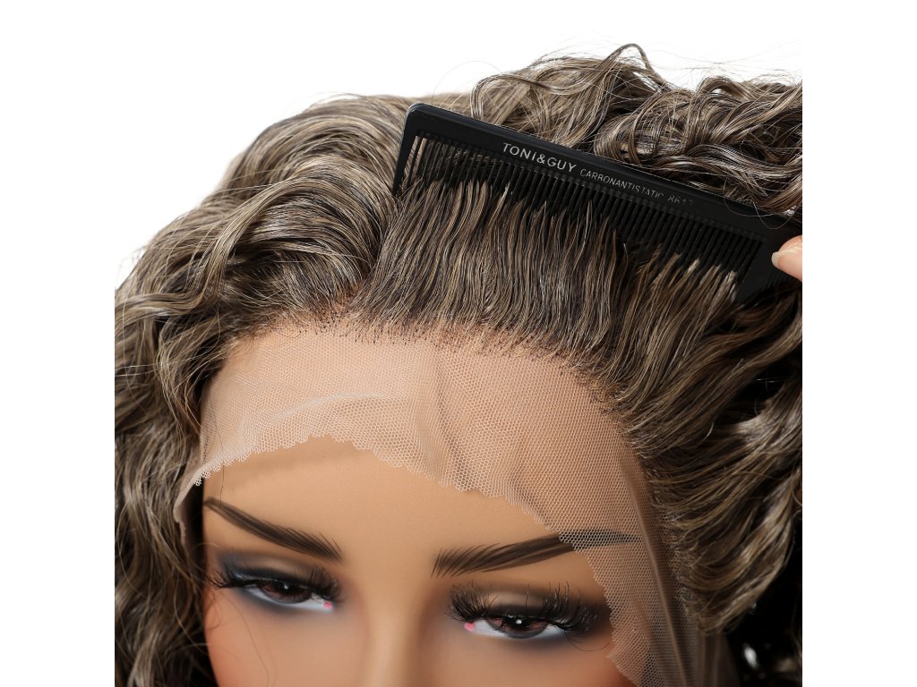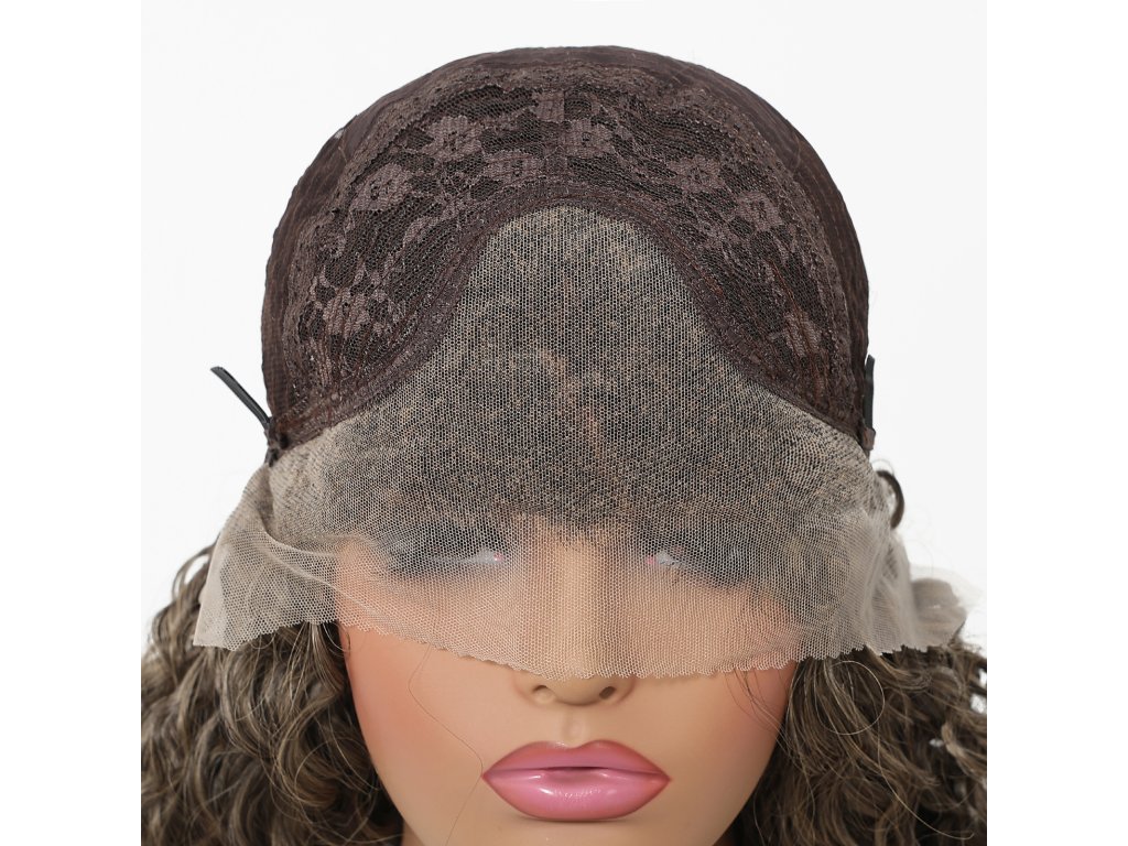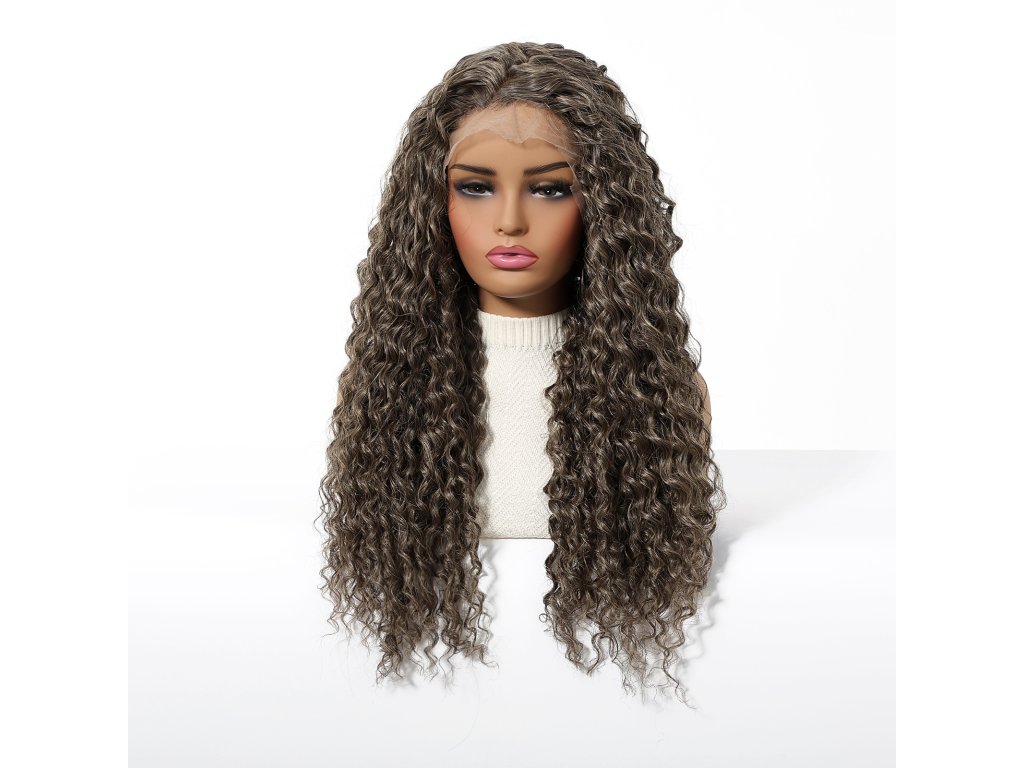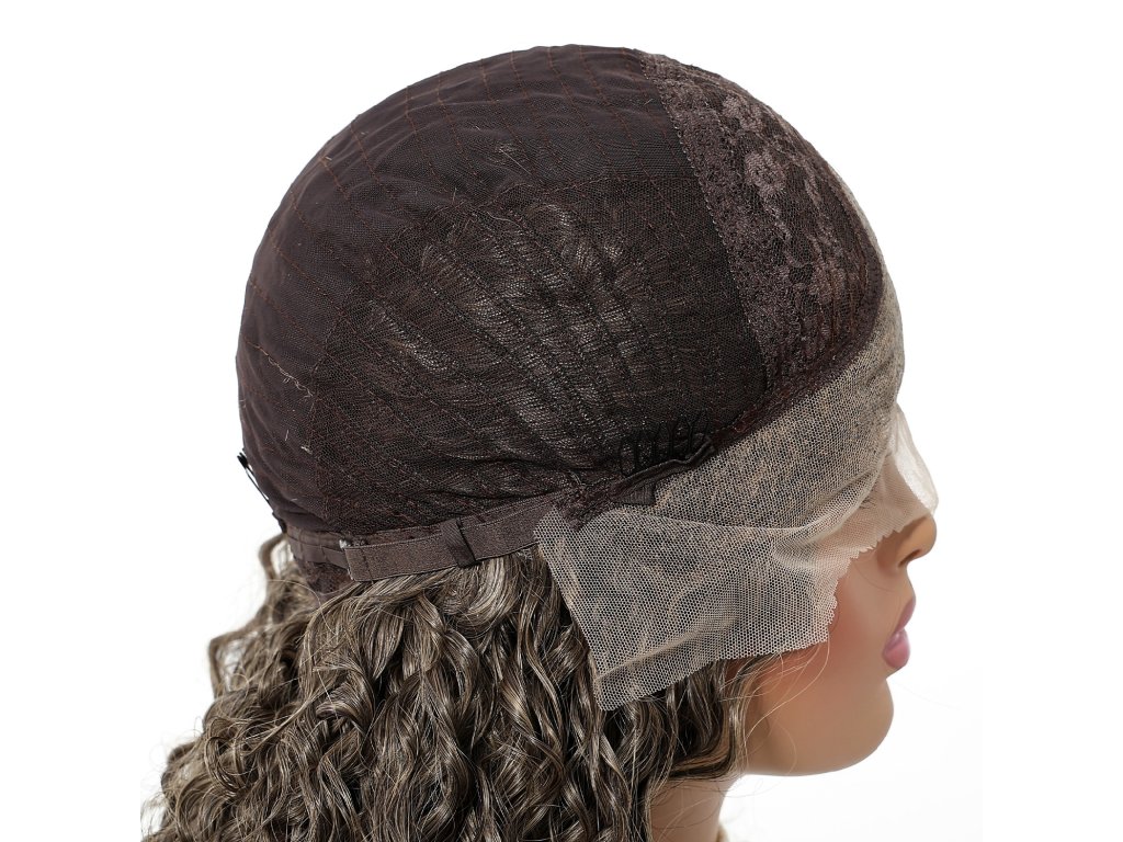 Popelavě hnědá kudrnatá paruka Sirena se síťkou (lace front)