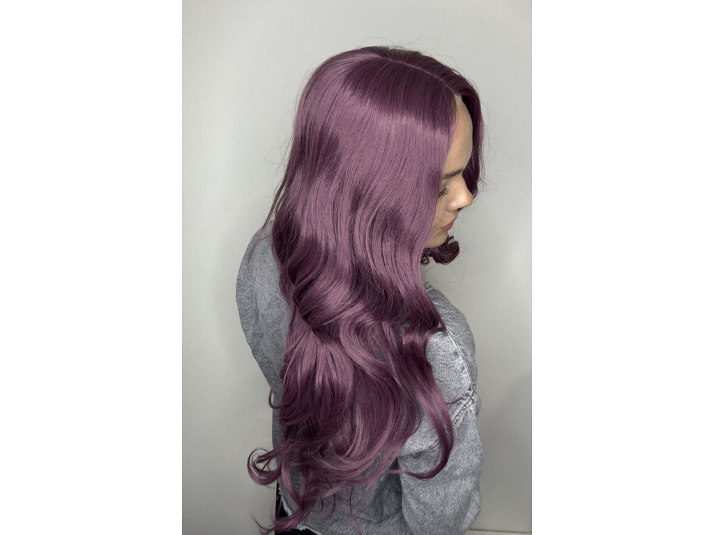 Vlasy jsou vyrobeny z kvalitního umělého vlákna. Paruka s dlouhými vlasy a přirozenými vlnami. Nádherná purpurově fialová barva.