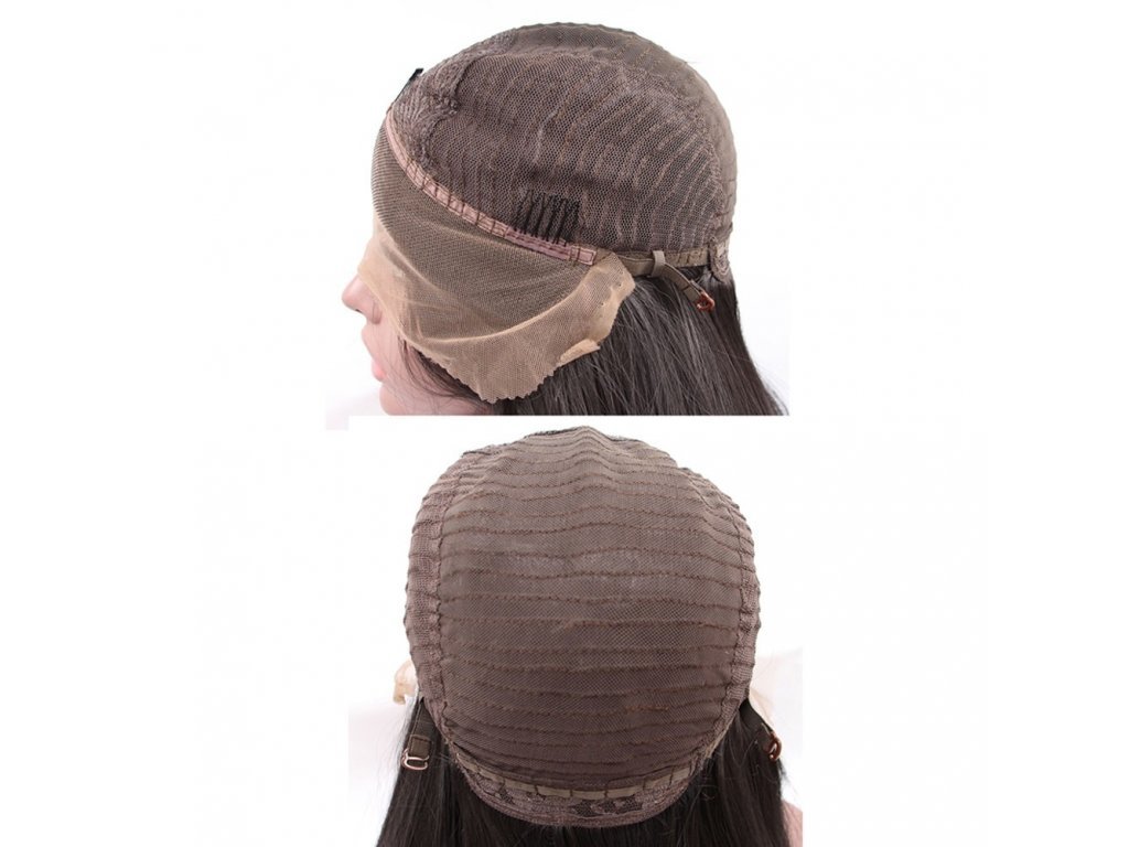 Součástí je síťka, která vychází zespodu paruky a slouží k nalepení paruky přímo na hlavu. Síťku si jednoduše zastřihnete do tvaru, jaký budete potřebovat a pomocí make-upu zneviditelníte. Tohle řešení působí mnohem přirozeněji. Navíc, tak zamezíte pohybu paruky na Vaší hlavě.