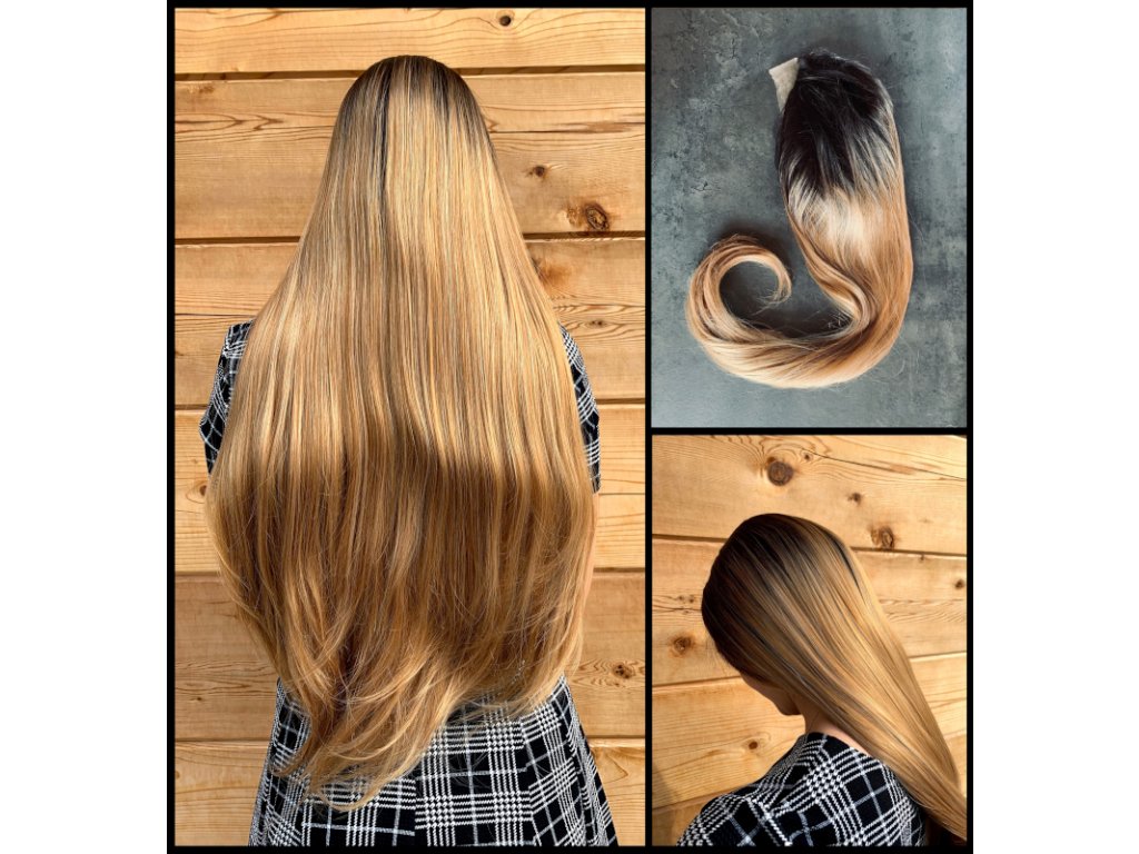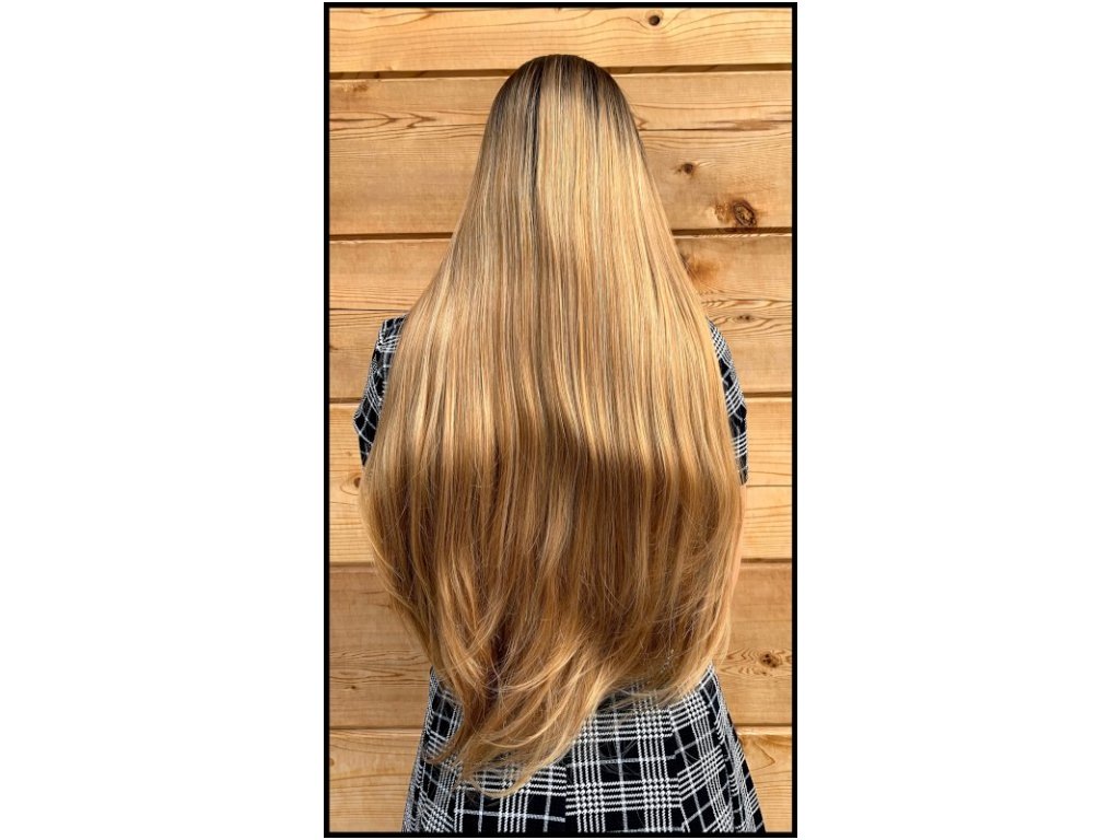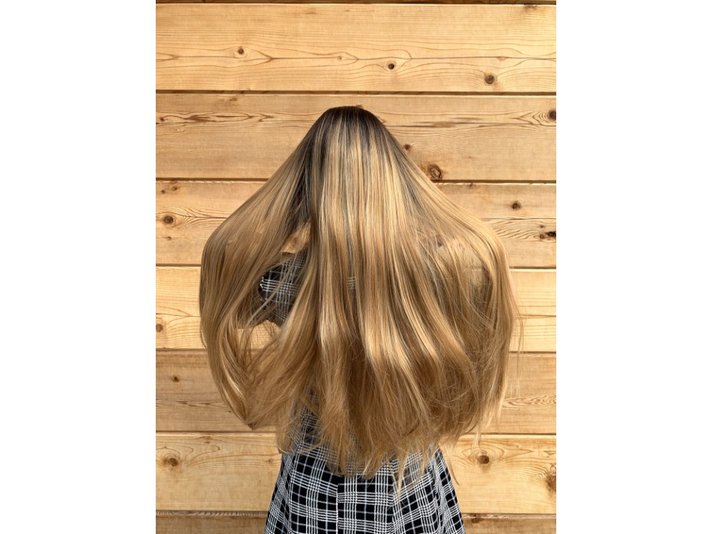 Paruka má u kořene tmavě hnědou barvu, která směre dolů přechází v barvu světle hnědou. Vlasy jsou vyrobeny z vysoce kvalitních umělých vláken. Paruka je hustá a rovná.