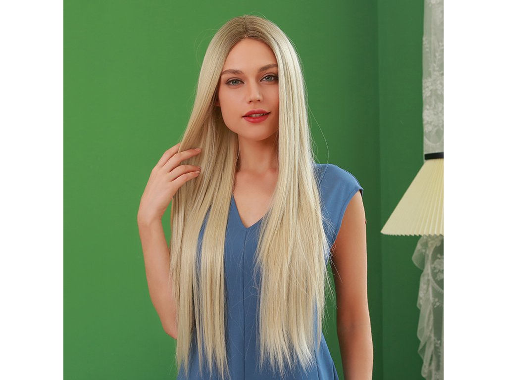 Paruka je vyrobena z prémiového syntetického vlákna velice příjemného na dotek, svou jemností připomíná lidské vlasy. Půvabný vzhled paruce dodává její moderní střih a platinová blond barva. Dlouhé a rovné vlasy.