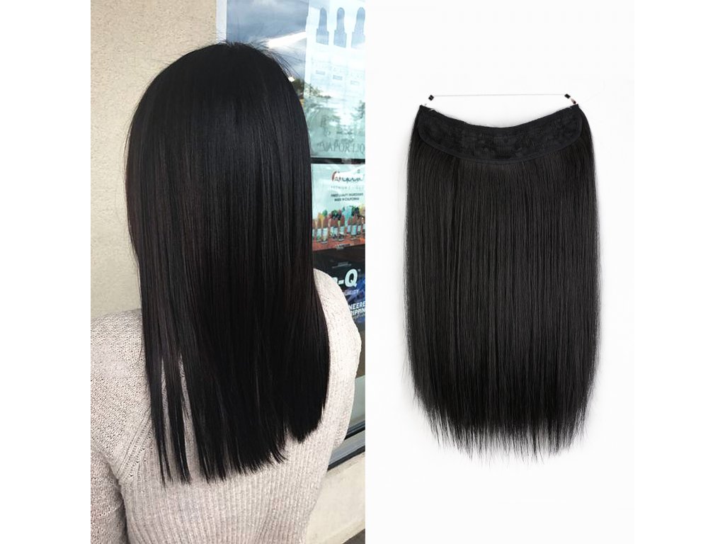 prémiové syntetické vlákno pohodlné a diskrétní nošení dokonalé splynutí s Vašimi vlasy rovné vlasové pásy - přírodní černá barva Délka: 40cm
