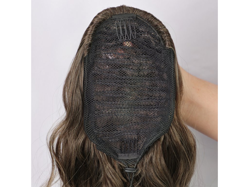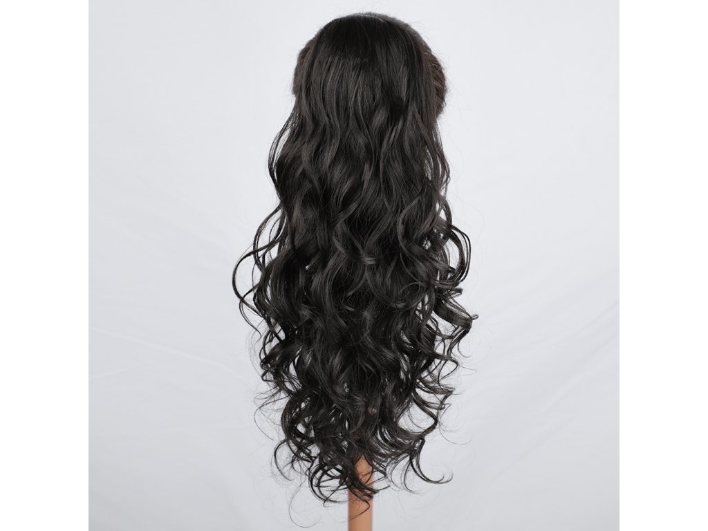 vlnité vlasové pásy - tmavě hnědé hmotnost 130 g přirozený vzhled délka 50 cm šířka 23,5 cm 5 sponek