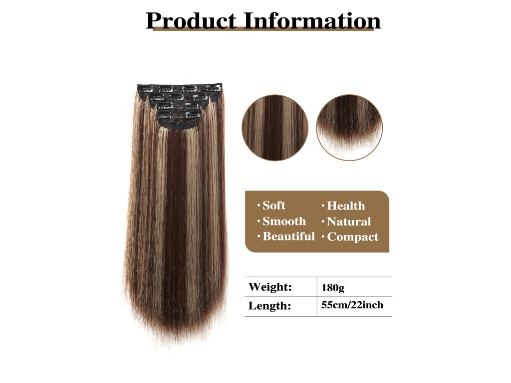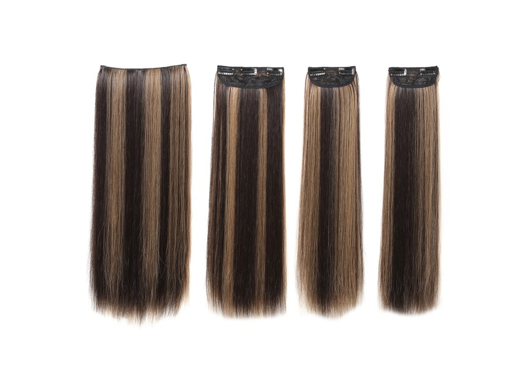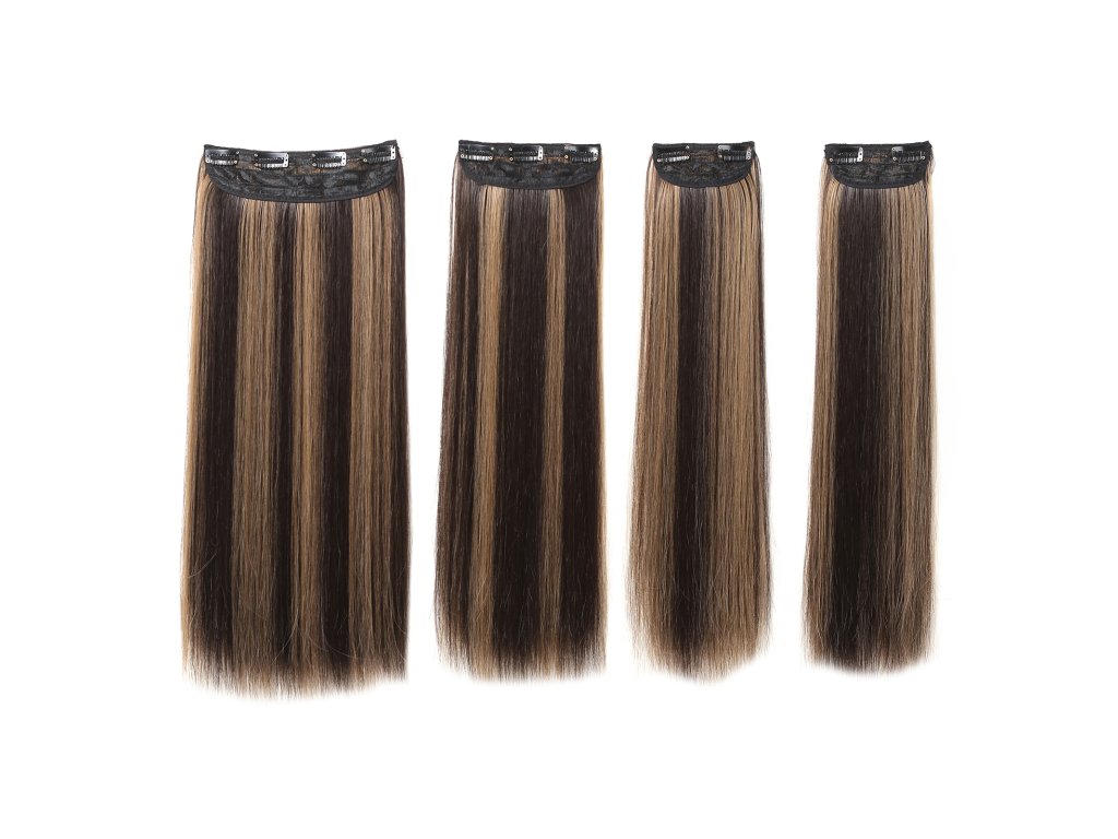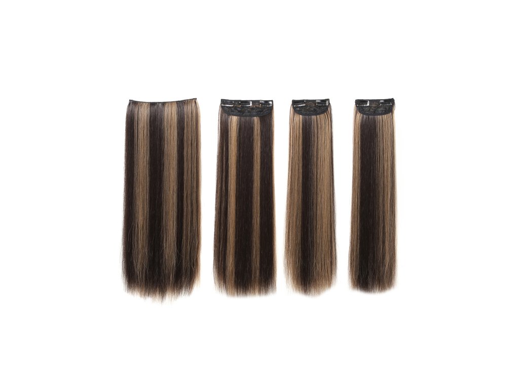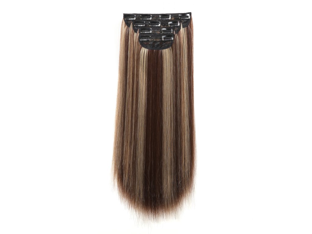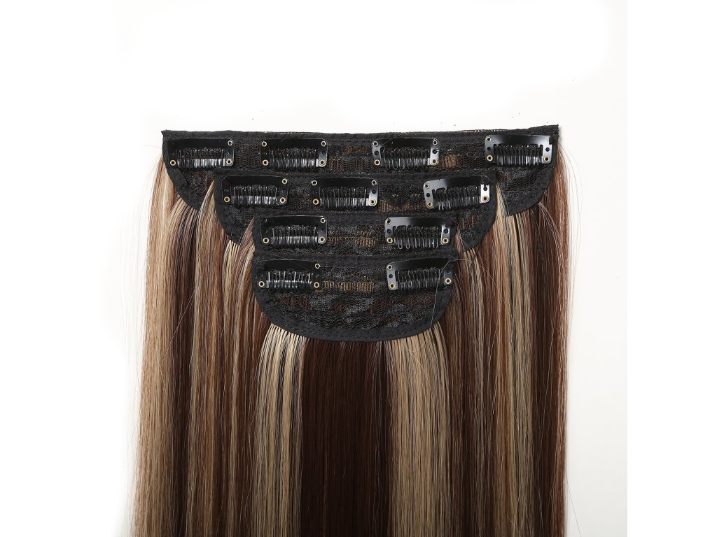 Vlasy clip in 4 pásy - hnědé melírované rovné vlasové příčesky 55 cm