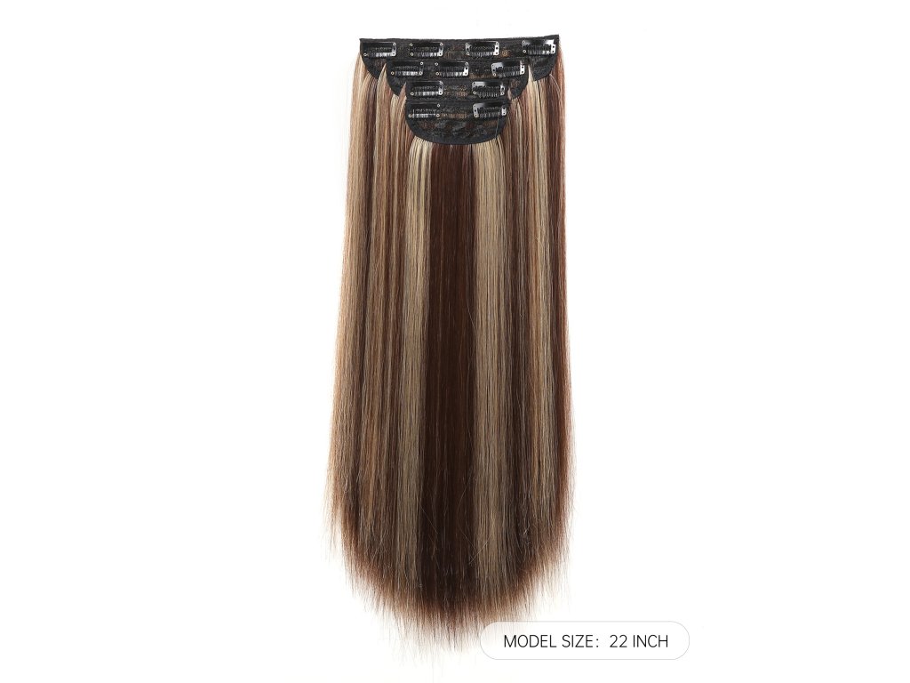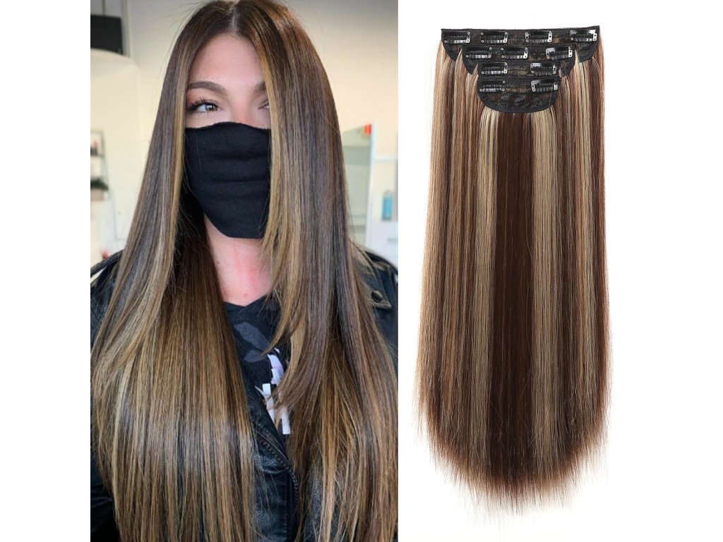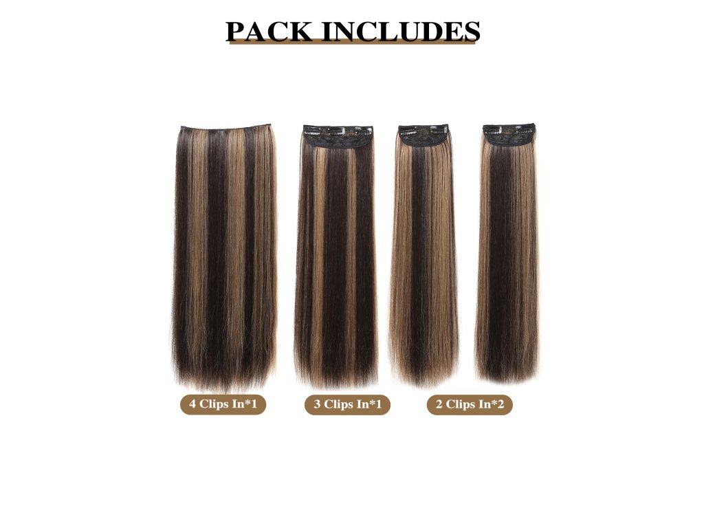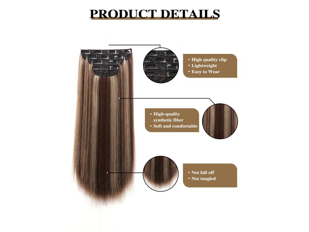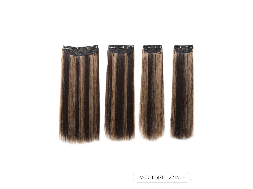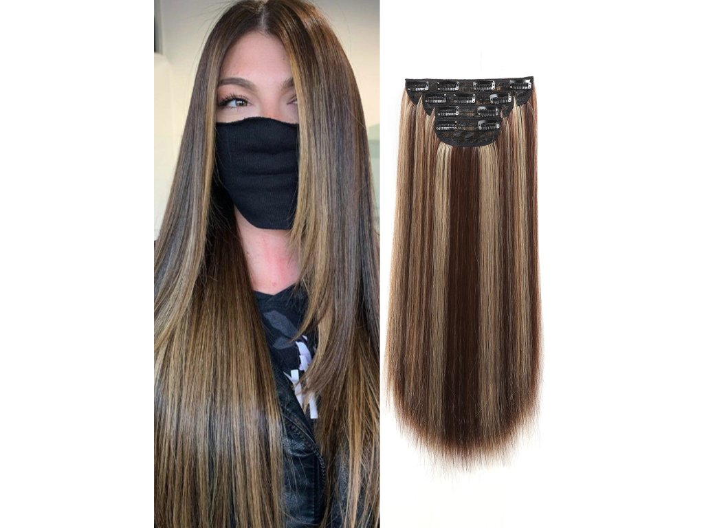 Vlasy clip in 4 pásy - hnědé melírované rovné vlasové příčesky 55 cm