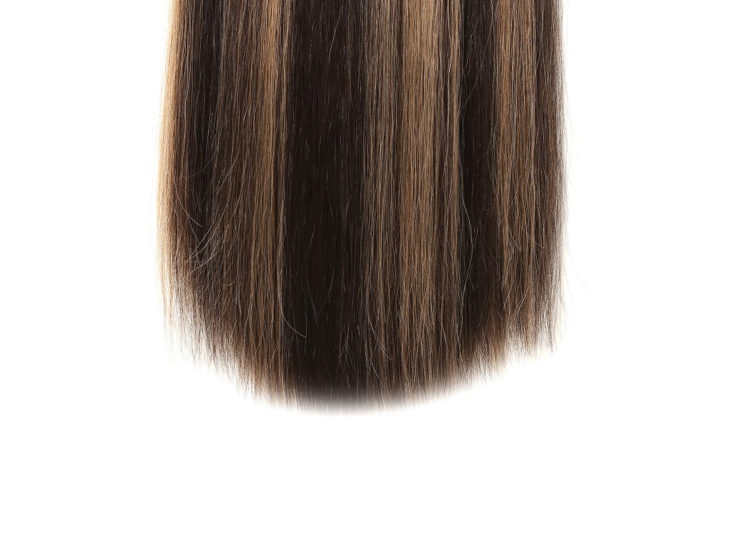 celkem 4 pásy rovné vlasové pásy - světle hnědá lesklá barva hmotnost 150 g přirozený vzhled délka 55 cm šířka nejširšího pásku 14 cm